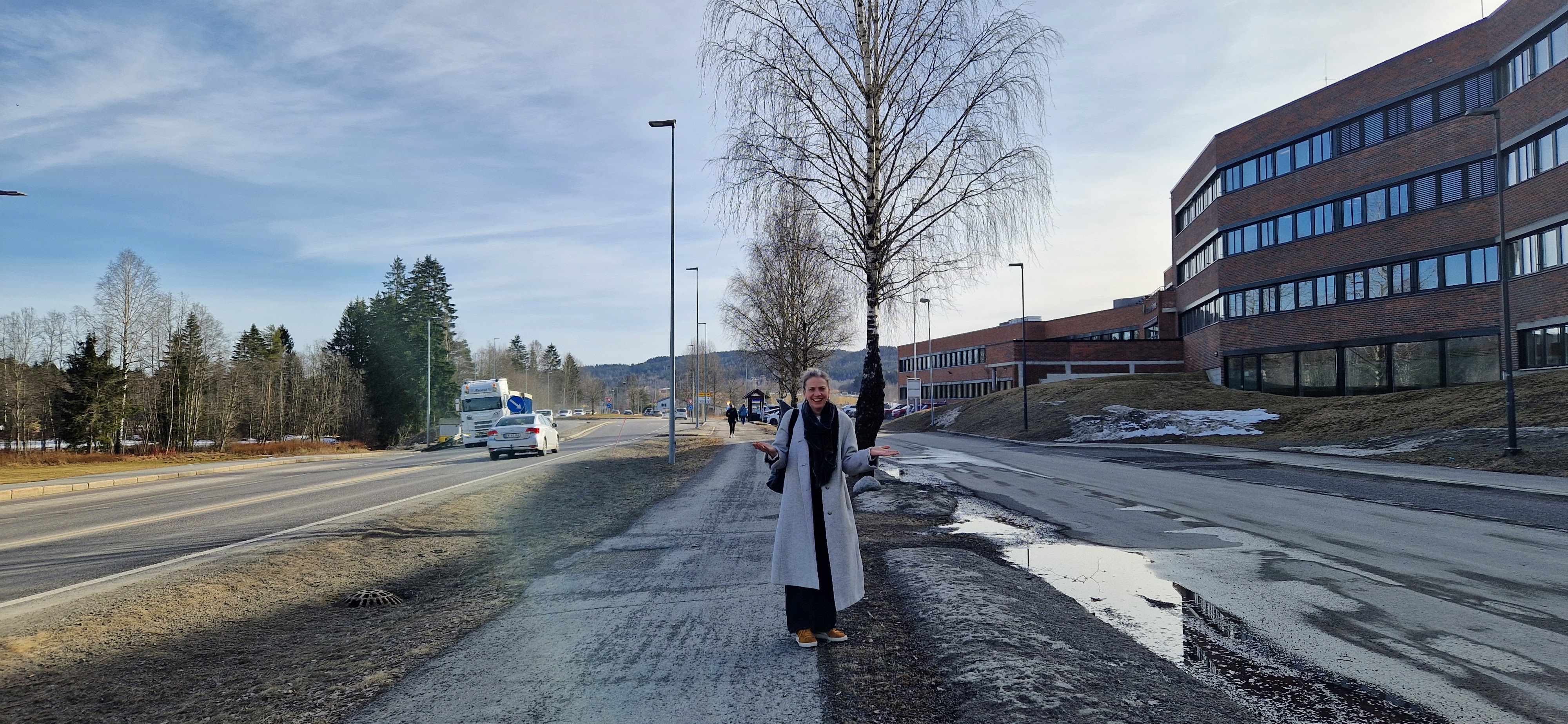 SENTRUM. Ingeborg Apall-Olsen fra DOGA står midt i Nittedal sentrum. Foto: Matti Lucie Arentz/DOGA