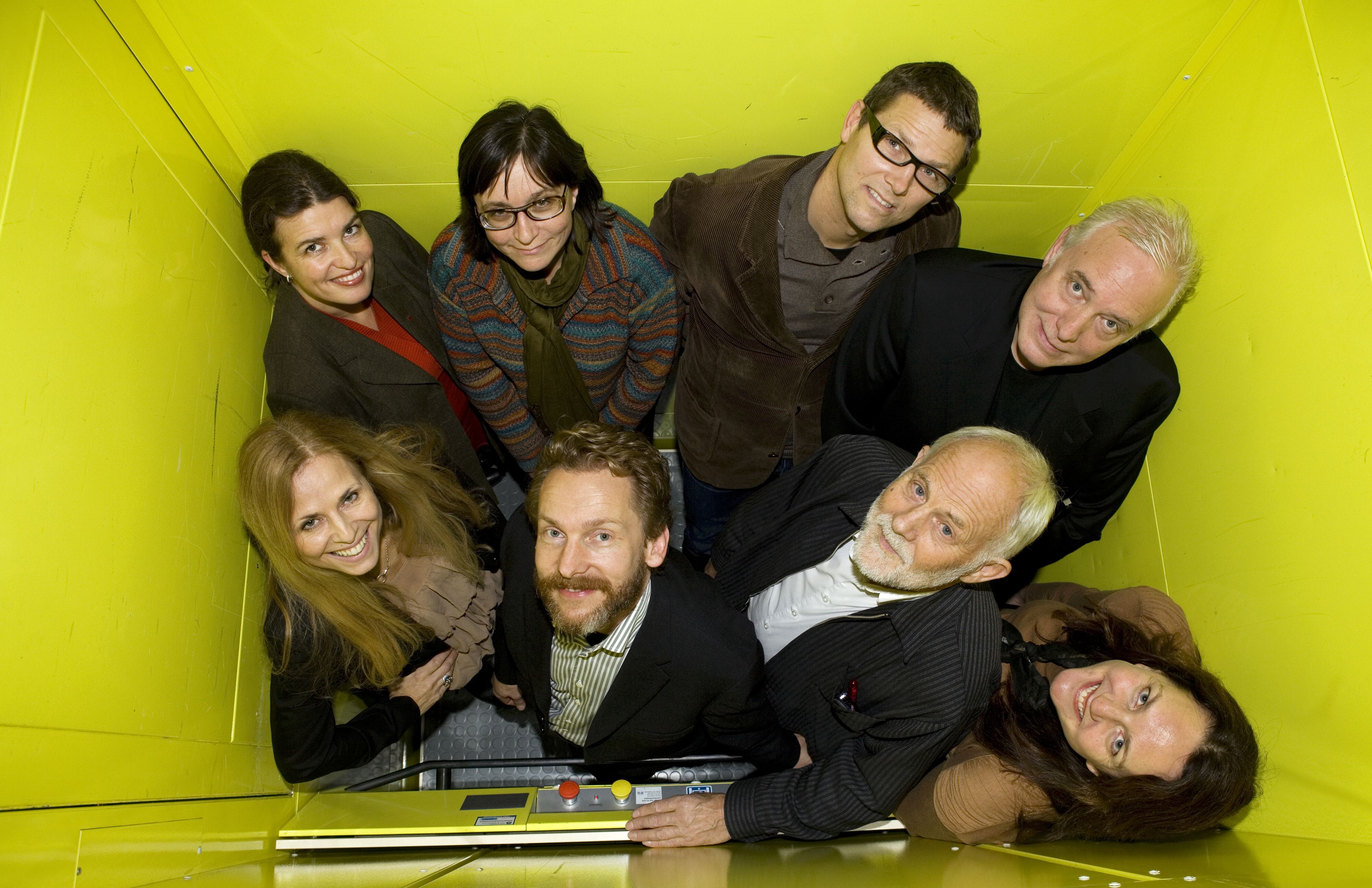 UNIVERSELL JURY: – Norge ligger i fremste rekke på lovgivning, handlekraft og tiltaksvilje. Totalt sett er vi best i verden på universell utforming, sier Onny Eikhaug (nederst til venstre) i Norsk Designråd. Her sammen med jurymedlemmer til Innovasjonsprisen for universell utforming i den universelt utformede heisen på DogA i Oslo. Fra venstre og med klokken: Liv Kari Eskeland, Eirin Ryeng, Ole Christian Bergan, Dave Vikøren, Marianne Støren Berg, Sigmund Asmervik og Mikael Snaprud. Juryleder Guro Fjellanger var ikke til stede da bildet ble tatt. Foto: Johnny Syversen