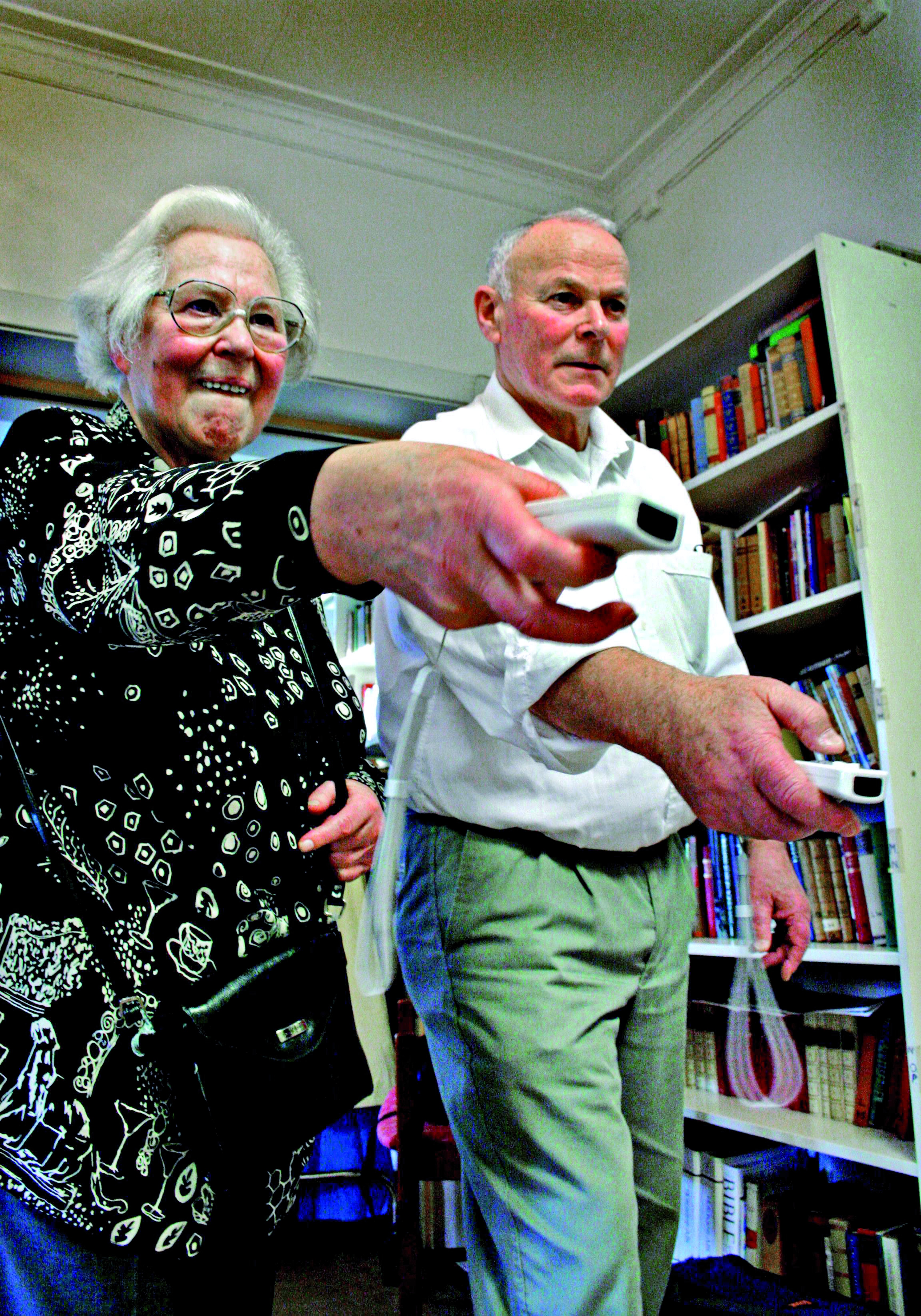 Et eksempel på et hjelpemiddel som er nødvendig for noen men nyttig for oss alle - i dag har den utbredt anvendelse som ingen vil være foruten. Her ser vi den brukt interaktivt for fysisk utfoldelse på et eldresenter (Wii fit). Foto: Joacim Lund/Scanpix