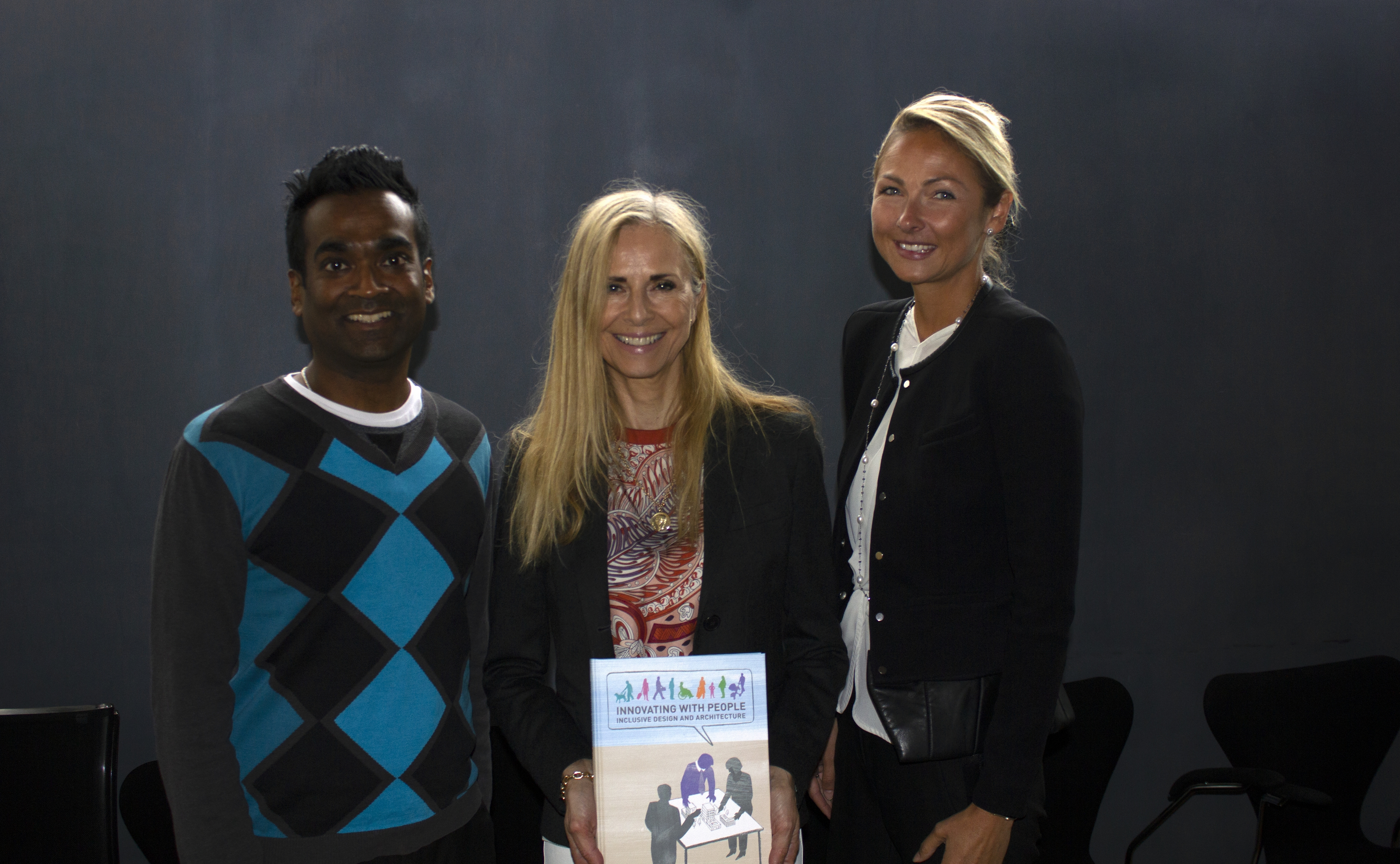 INKLUDERENDE FORFATTERE. (f.v.) Rama Gheerawo, Onny Eikhaug og Victoria Høisæther lanserte boken “Innovating with People – Inclusive Design and Architecture” på et DOGA-arrangement i Arkitektenes hus fredag 10. mai. Foto: Eirik Iveland