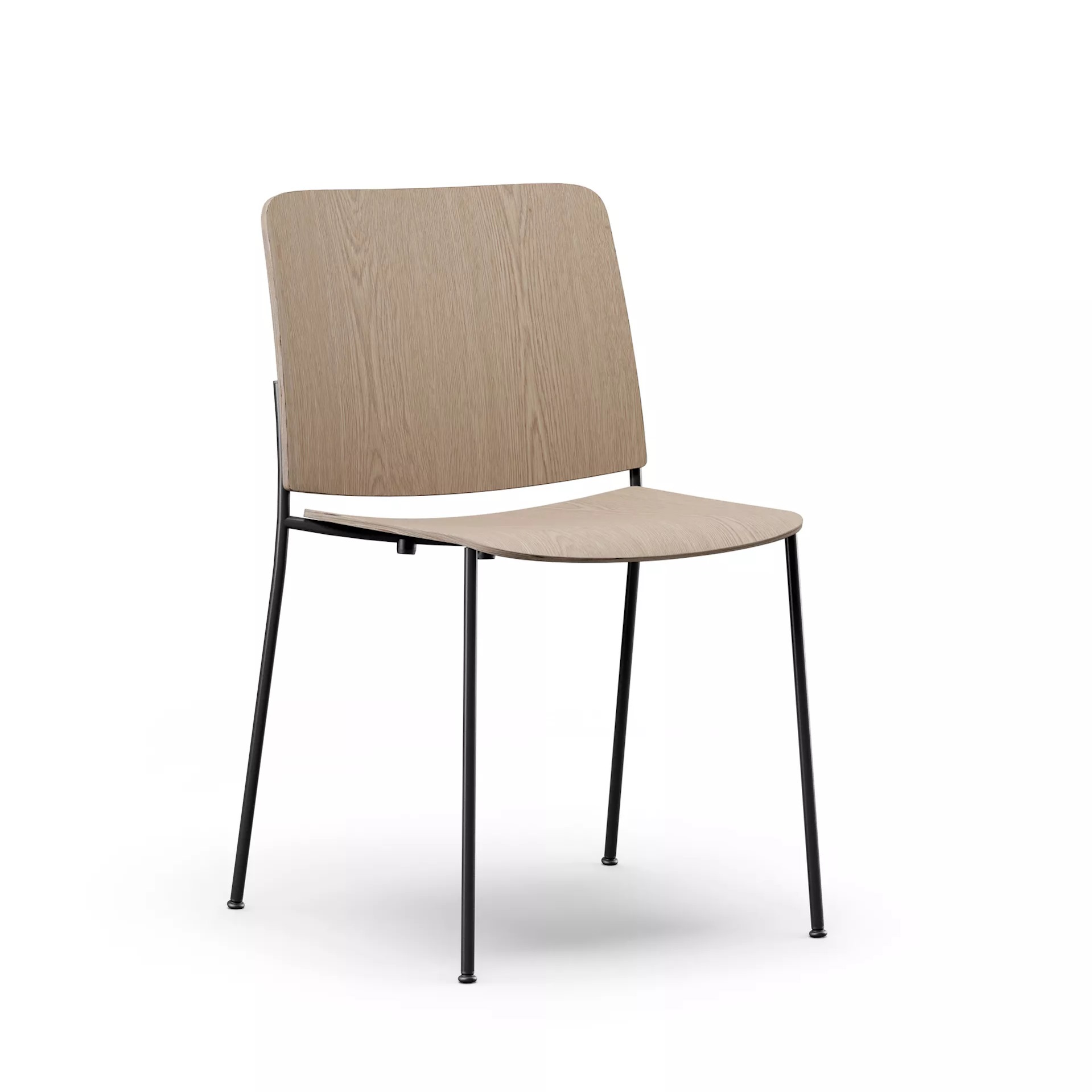 – Våre møbler varer i årtider, og da må formuttrykket vare like lenge. For å finne dette uttrykket spurte designerne seg hvordan et barn ville tegnet en stol. Resultatet er en elegant finerstol med mange forskjellige understell som gjør produktet passer like godt på en kantine som i et prosjektrom, sier markedssjef Pål Eid-Hviding i Fora Form.