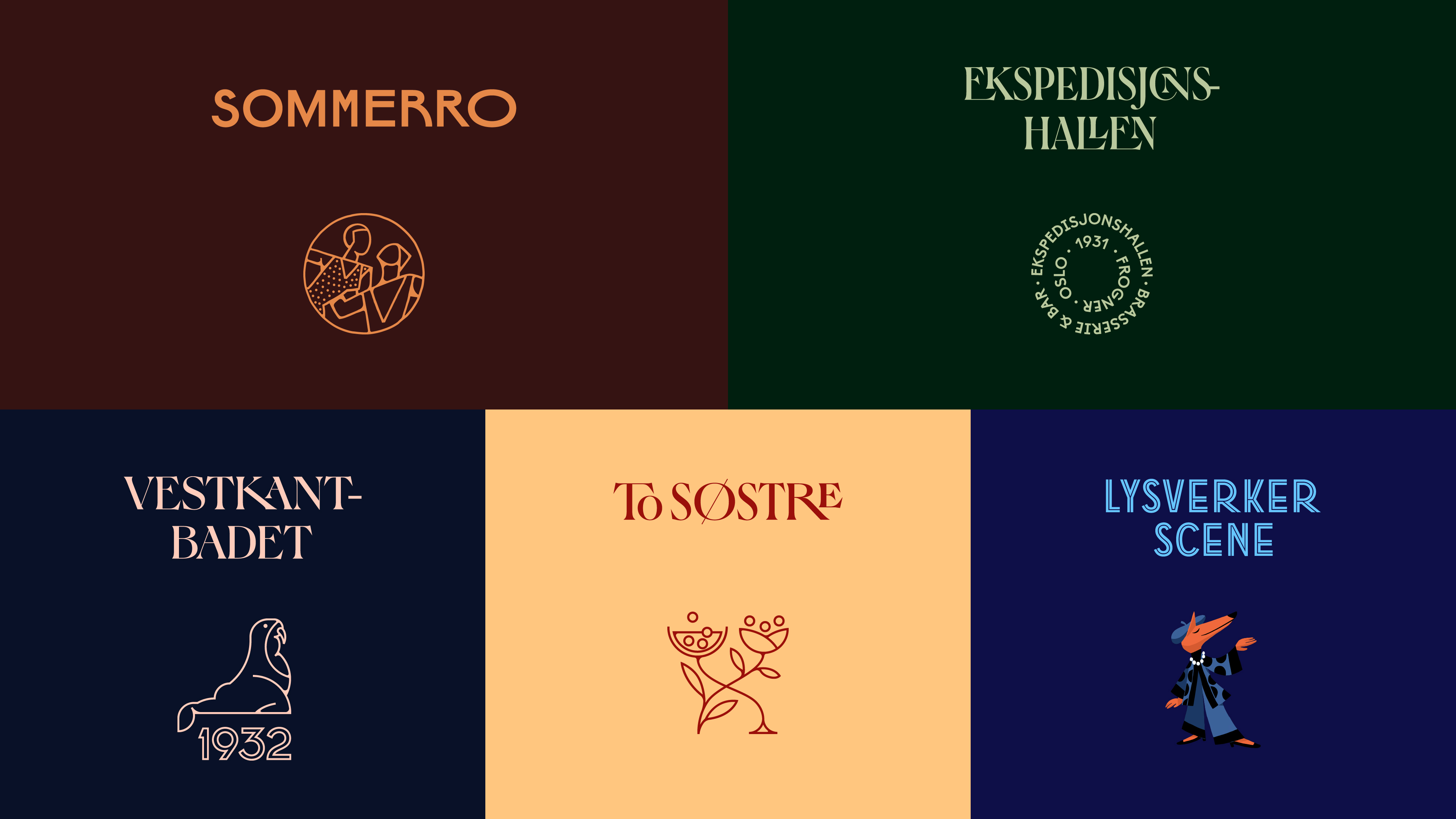 En egen skrifttype gjør Sommerro gjenkjennelig også uten andre grafiske elementer til stede. Den er en rød tråd for hele Sommerro, med egne farger til hotellet, restaurantene, badet, scenen og kinoen.