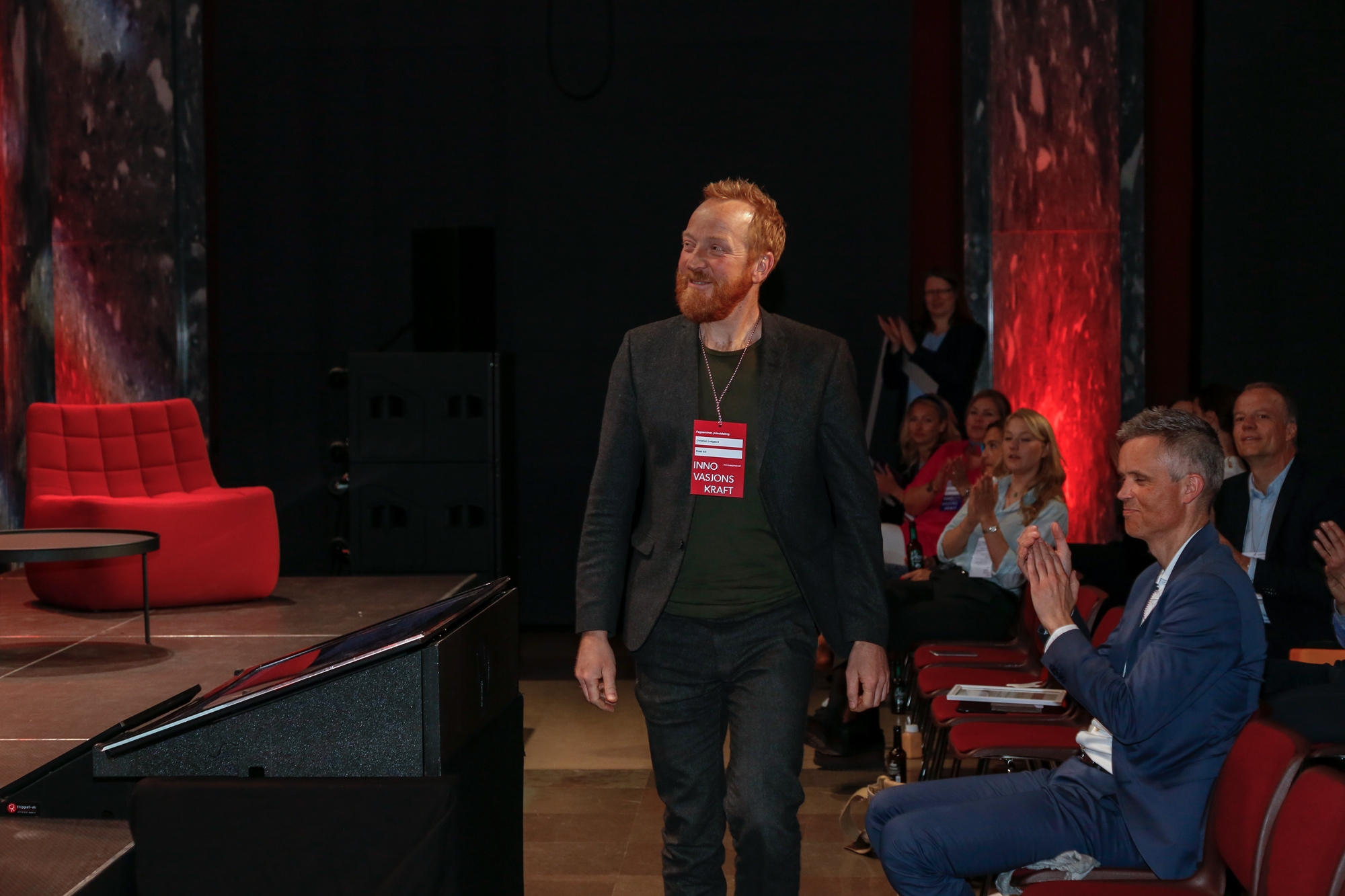 Flokk, her ved Christian Lodgaard, ble kåret til Årets eksportbedrift, og mottok også Innovasjonskraftprisen 2018. Foto: Kristin Jacobsen / Studio Oscar