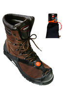 Den nye brodden er robust, men likevel lett. Piggene er støpt inn i gummisålen, og sitter både foran og bak, noe som gir godt grep og en naturlig gange. Broddens festemekanisme gjør at den sitter godt fast også ved store bevegelser, og at den kan festes til store vernestøvler.