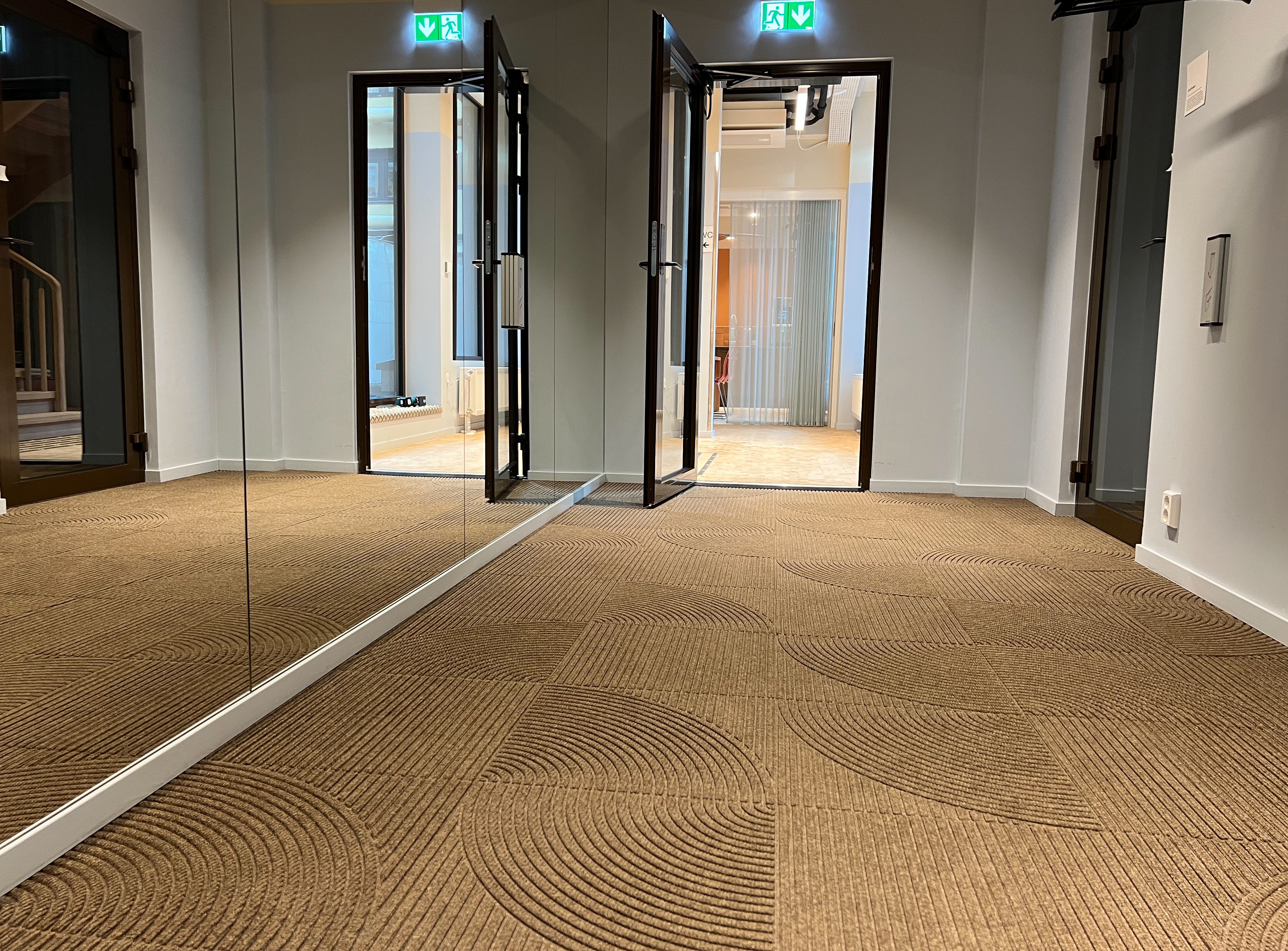 Mattene, som er fra Heymats fliseserie Zen, kler hele inngangspartiet til DOGAs nye lokaler i Nedre Vollgate. De er designet av Kristine Five Melvær, og er blant annet laget av resirkulerte plastflasker.