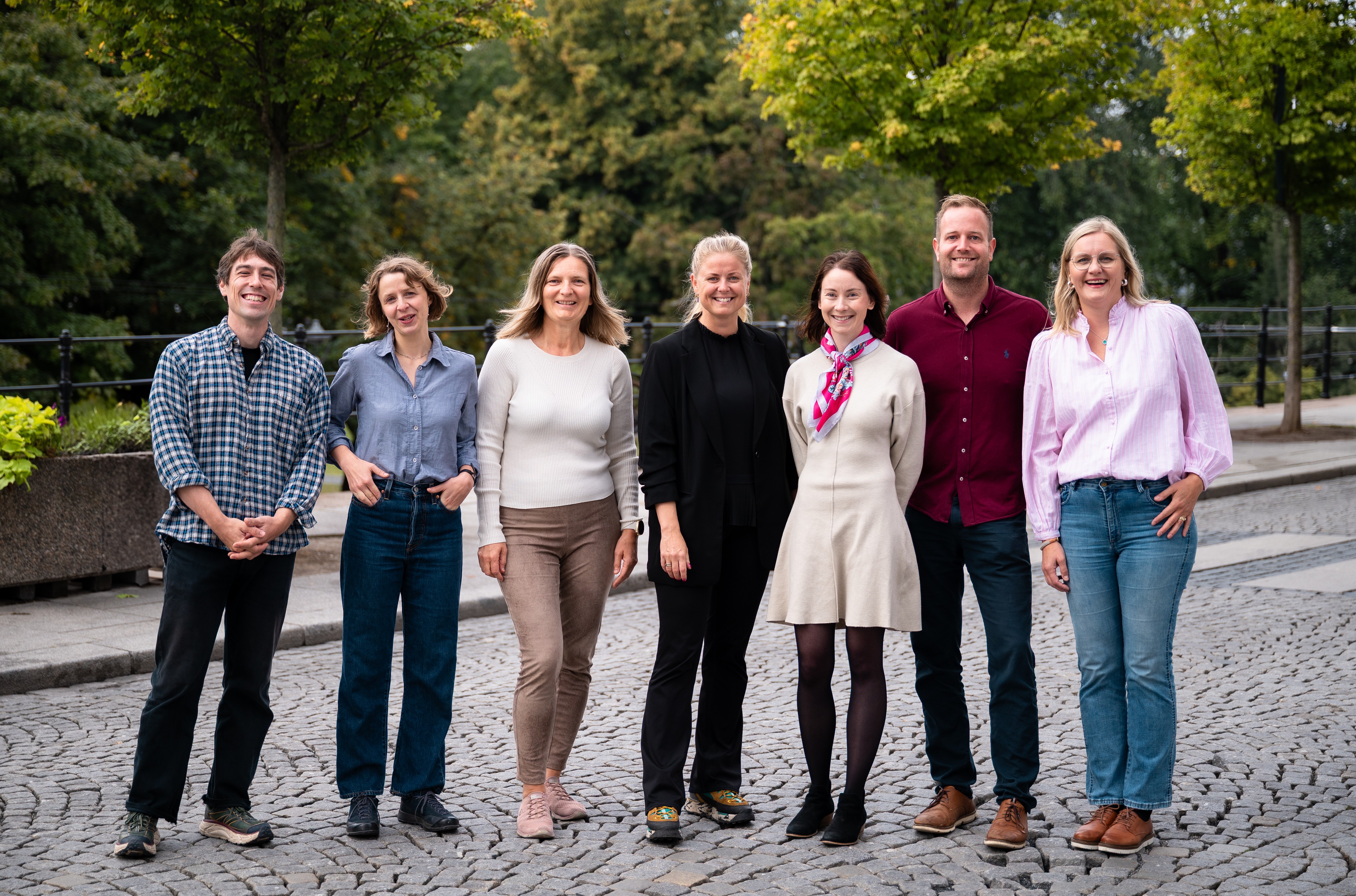 SPENT INNOVASJONSGJENG. (f.v.) Erlend Grimeland fra Travers, Ida Skogstad i PIR2, Britt Kjensli fra Nordland fylkeskommune, Tina Cathrin Hansen og ordfører Hanna M. Sverdrup fra Moskenes kommune, Preben Moen fra Å Rorbuer og Torunn Rørvik Wilhelmsson fra Museum Nord gleder seg til å innovere for reiselivet i Moskenes. Foto: Joachim Engelstad