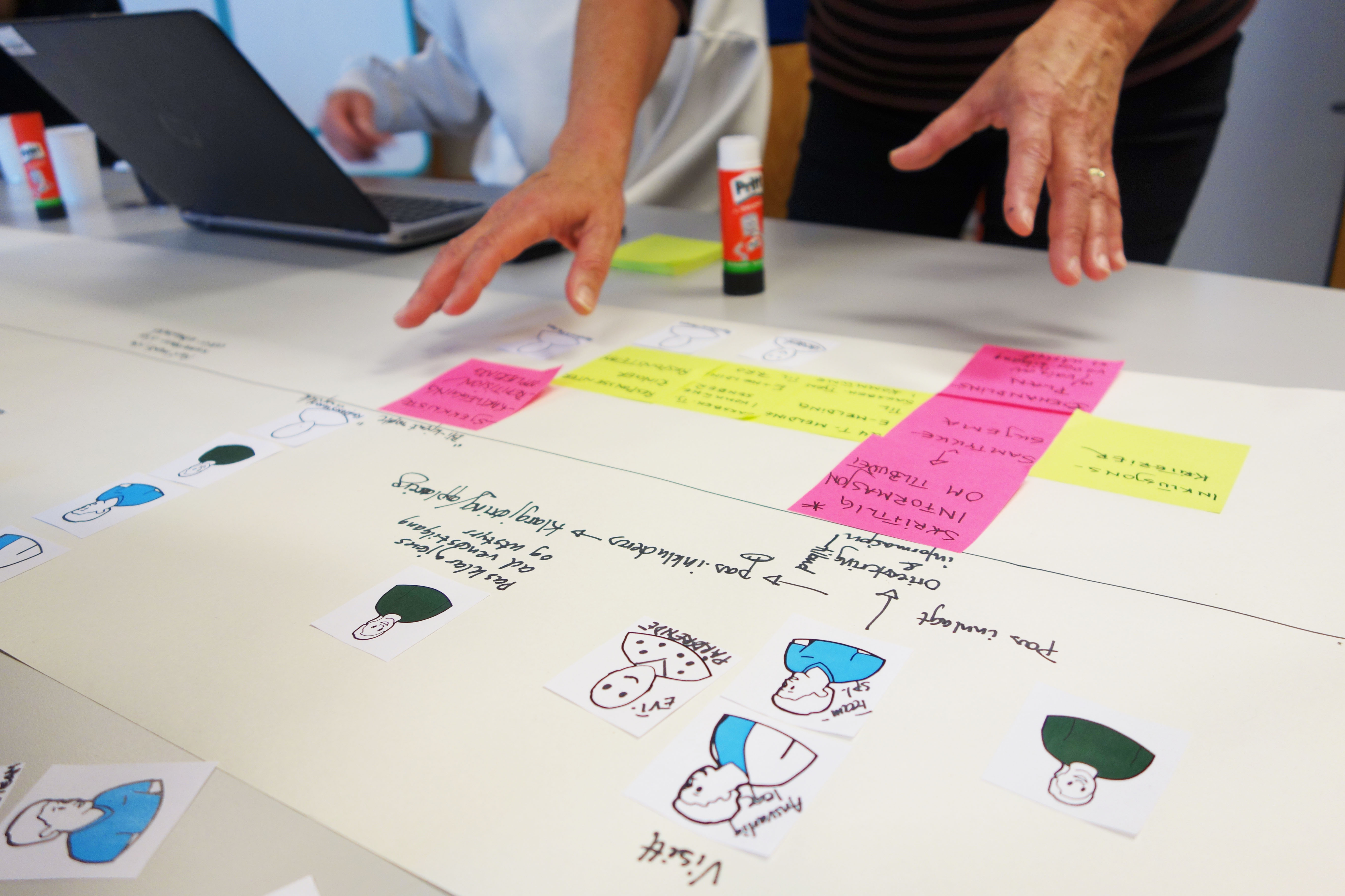 Gjennom et stort antall intervjuer avdekket tjeneste- og systemdesignerne hvordan brukerne opplevde pasientforløpet sitt, hva som fungerte godt og hvilke områder som kunne bli bedre. Et nytt tjenesteforløp ble utviklet og etter hvert testet ut på reelle pasienter. Erfaringer herfra ble tatt med i utviklingsprosessen.