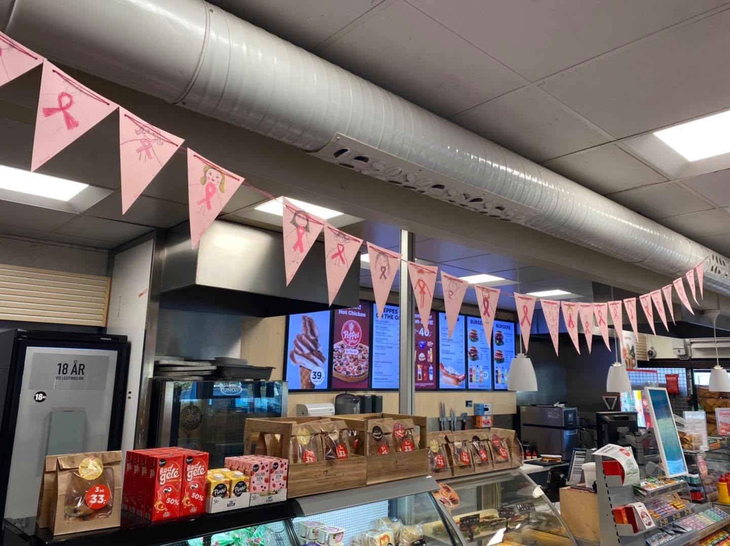 PYNT. Flere stasjoner var kreative med den rosa pynten under årets Rosa sløyfe-aksjon. Foto: Circle K Leirvik