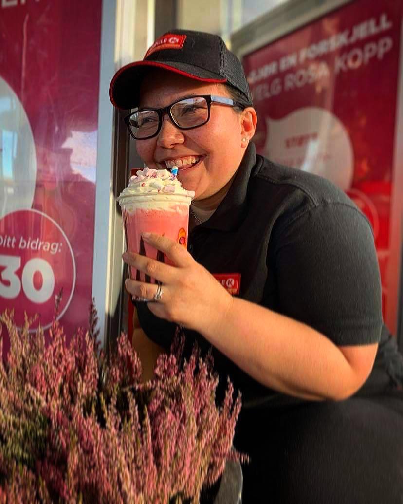 MILKSHAKE. På Circle K Elvebakken ble det servert rosa milkshake. Foto: Circle K Elvebakken