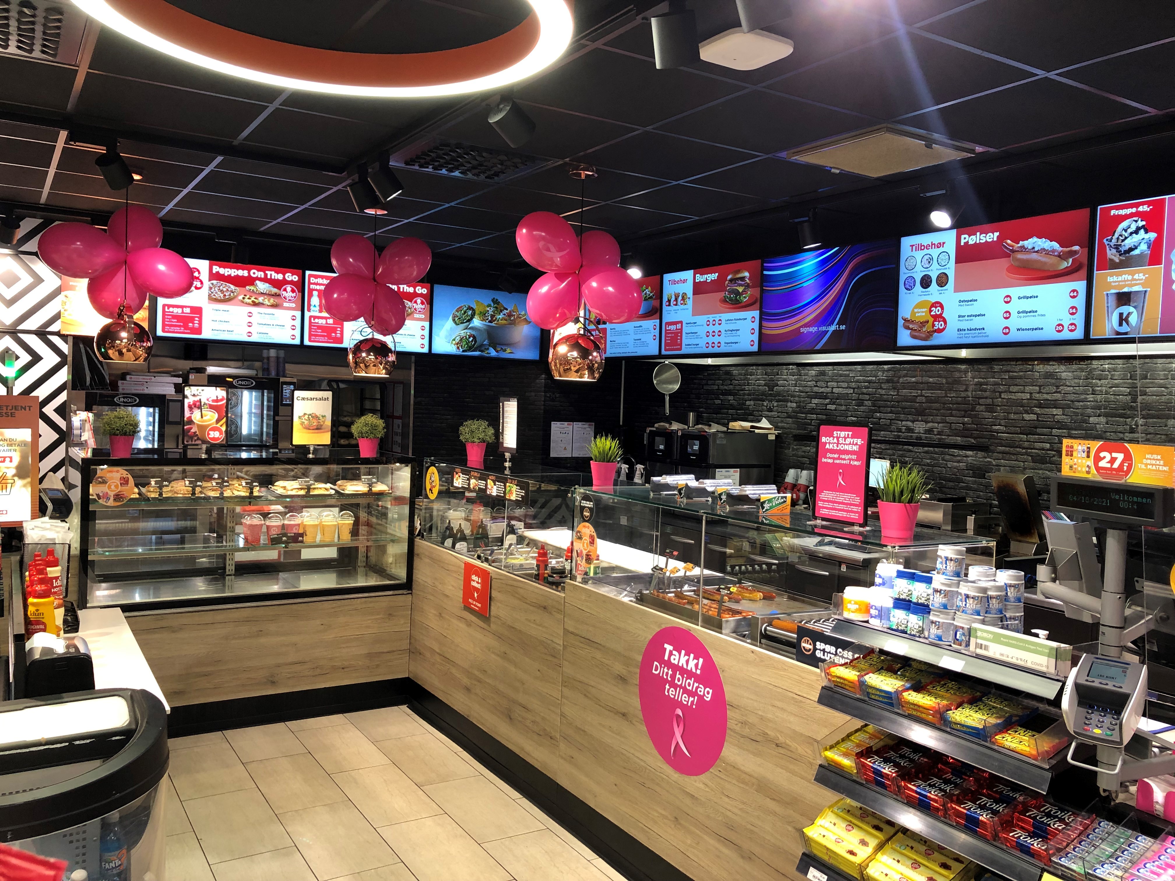 DEKOR. Circle K Økern var pyntet med rosa gjennom hele oktober. Foto: Circle K Økern