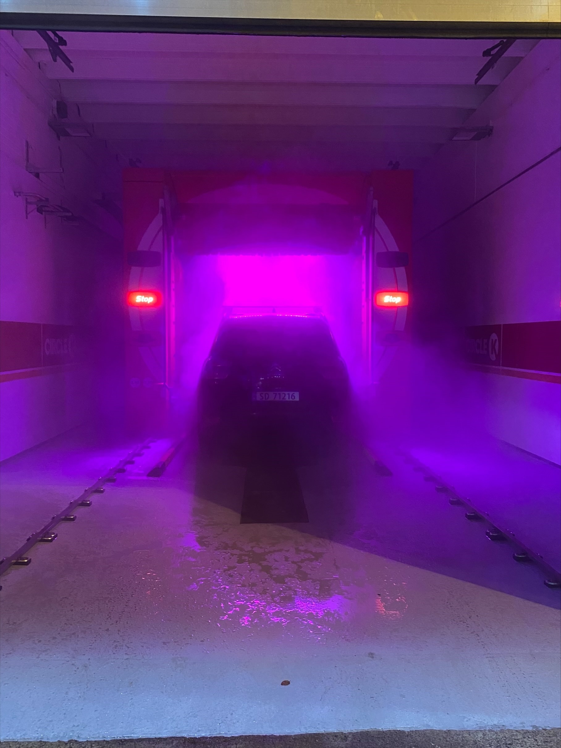 VASK. Bilvasken på Circle K Grimstad var rosa i oktober. Foto: Circle K Grimstad