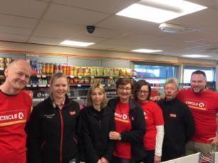 Frode, Miriam, Lisbeth, Live, Gry, Robin og Roger er klare til innsats på Circle K Fiane Vest.