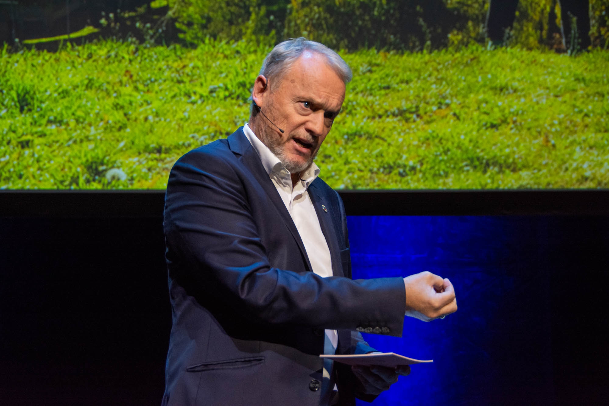 TRETTI ÅR OG LIKE BLID. I sommer kunne Raymond Johansen feire 30-årsjubileum som sjef. På Sopra Steria-arrangementet Power of Sharing delte han av sine ledererfaringer. Foto: Kjetil Grude Flekkøy / Sopra Steria