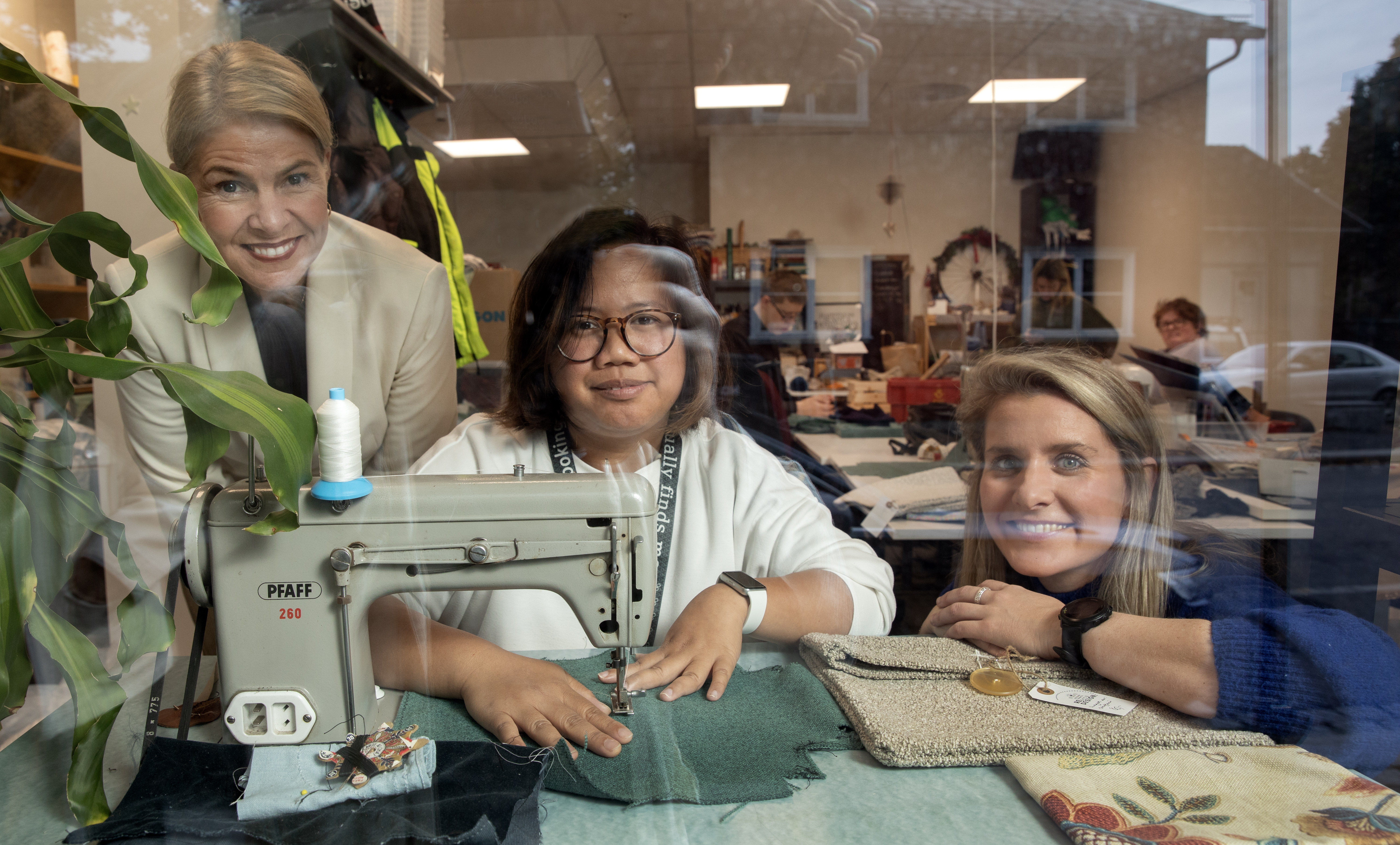 SOSIAL BÆREKRAFT. Bærekraft er sentralt i årets utvalgte innovasjonsprosjekter. Her er Anne Elisabeth Bull (t.v.) sammen med prosjektleder Siri Sanden i Norasonde (t.h.) og en deltaker på arbeidstrening. Foto: Sverre Chr. Jarild