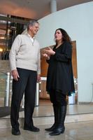 DISKUTERER SYKEFRAVÆR: Professor Andries J. Krose og Kathrine Darell Hovland, daglig leder i Bwell, ønsker et bredt fokus på hvordan mennesker kan holde seg langtidsfriske i en hektisk hverdag. Foto: Guro Sollien Eriksrud