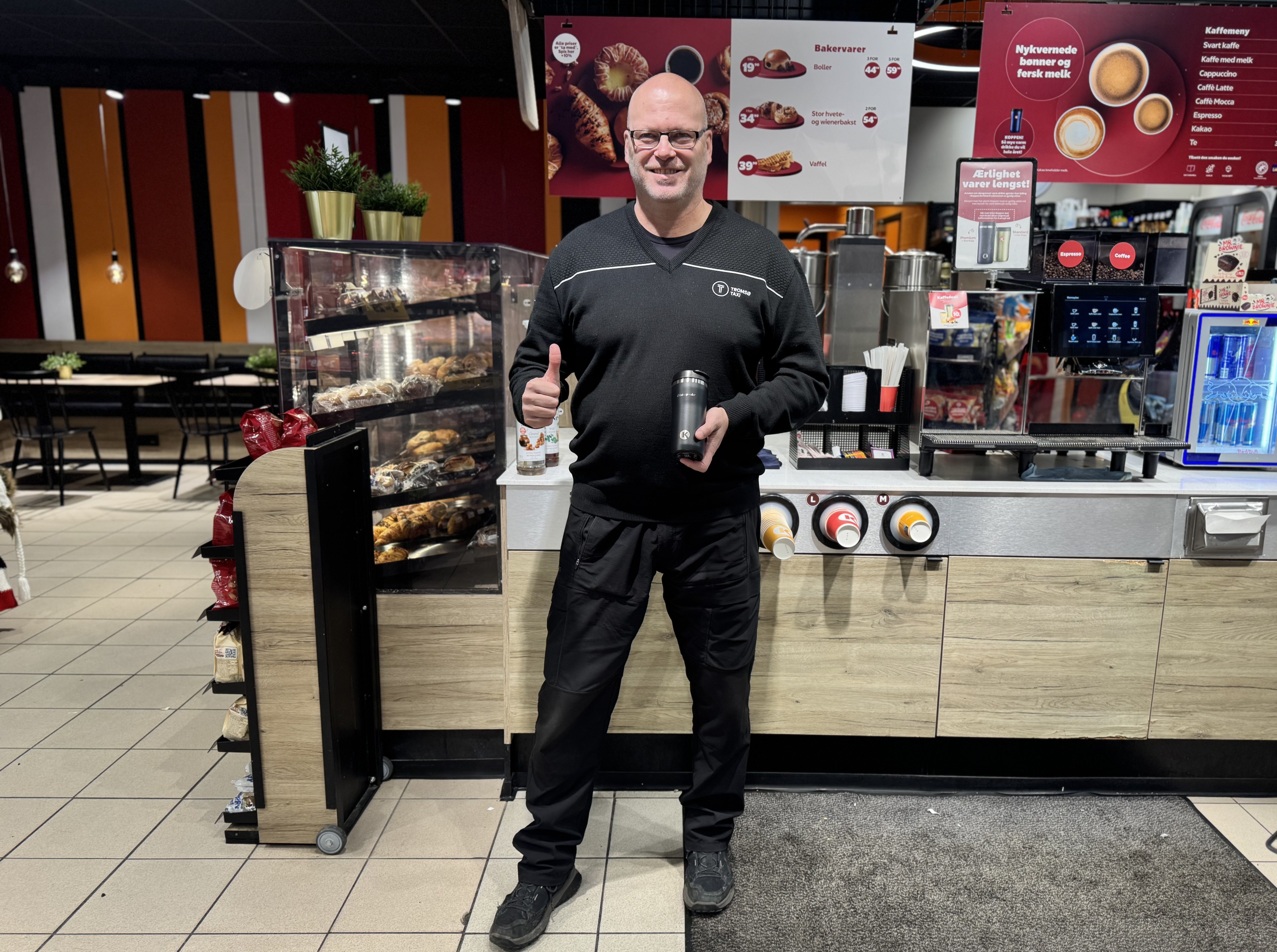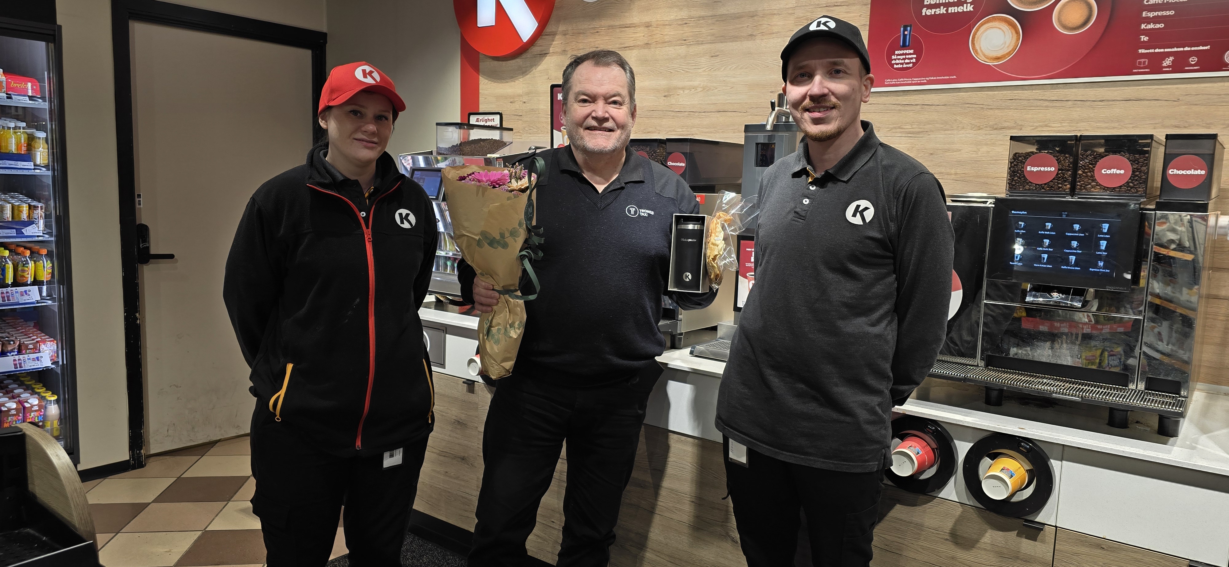 TRIVELIG I TROMSØ. Circle K Fr. Nansens plass har kåret Morten Trane til årets greieste kunde. Foto: Privat
