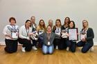 TALENTER. Talentsjef Lene Foldvik (i midten) fra Circle K med årets talentkull rundt seg: (f.v.) Ingrid Bromseth, Kristin Antal, Celine Josephine Holthe, Jolin Erika Johansen, Miriam Aanonsen, Silje Reinfjord Henriksen, Monica Jacobsen, Tonje Stabell og Sandra Pedersen. Foto: Circle K