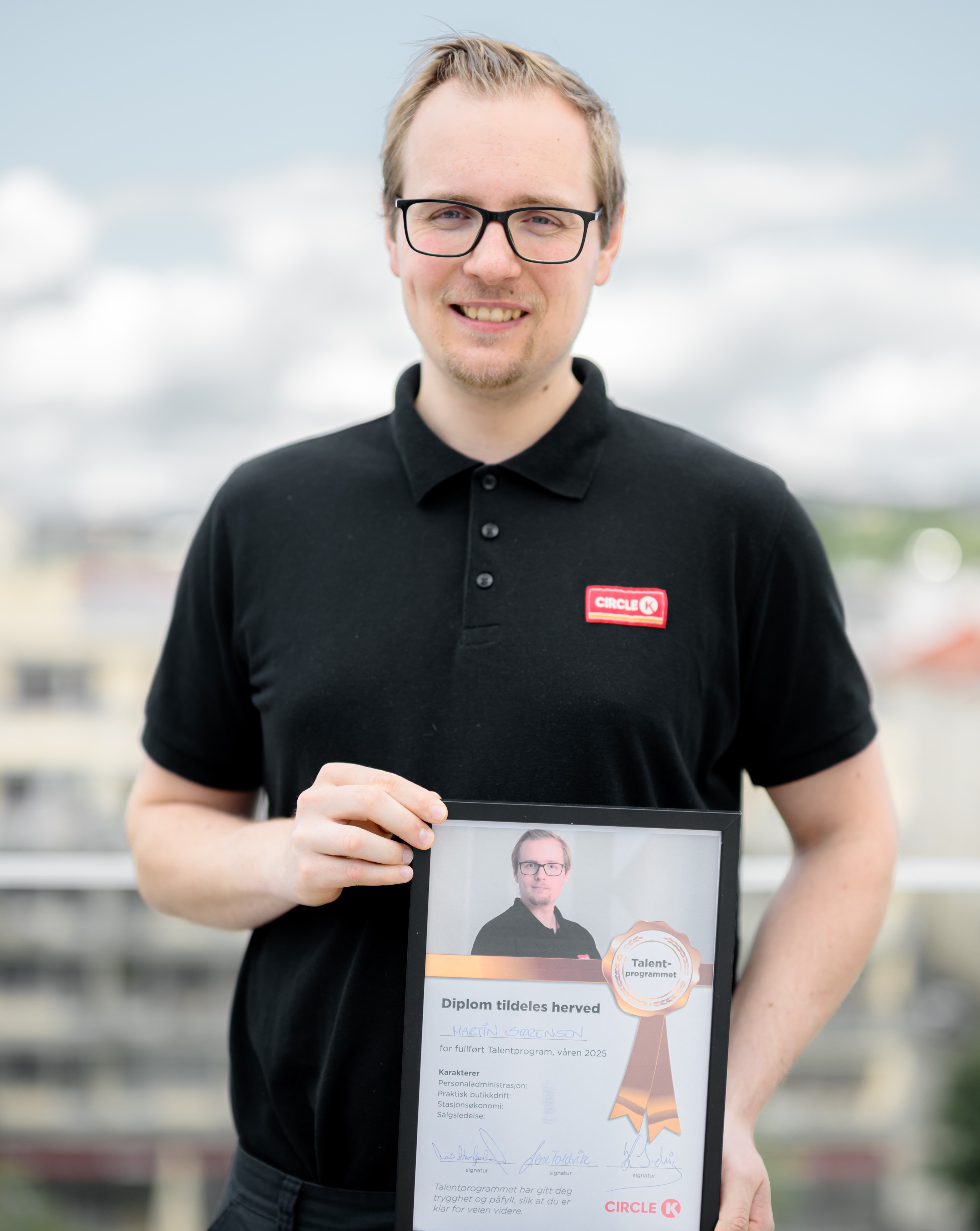 – Gratulerer til Martin og de sju medstudentene hans som nettopp har fullført talentprogrammet vårt. De har vist at de har stor kapasitet og et bredt register som ledere, og vi forventer mye av dem i fremtiden, sier Lene Foldvik. Hun er ansvarlig for talentprogrammet i Circle K.