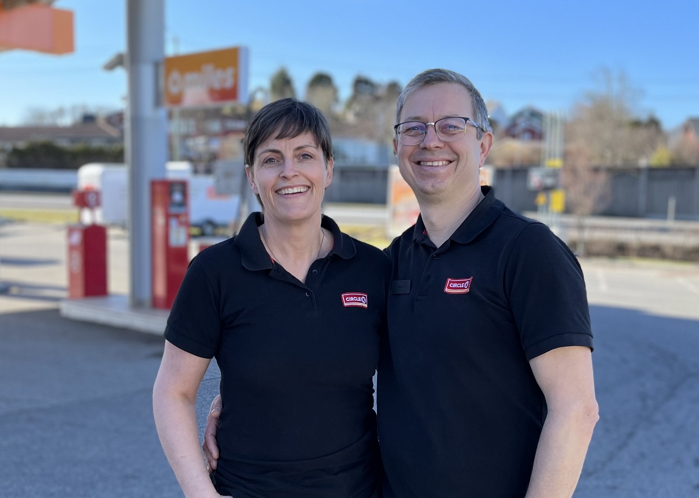 TIL SAMMEN 44 ÅR PÅ KVALA. Ekteparet Kristine og Jostein Kristiansen har jobbet på samme stasjon et halvt liv. Nå skal de finne på noe nytt. Foto: Circle K Kvala