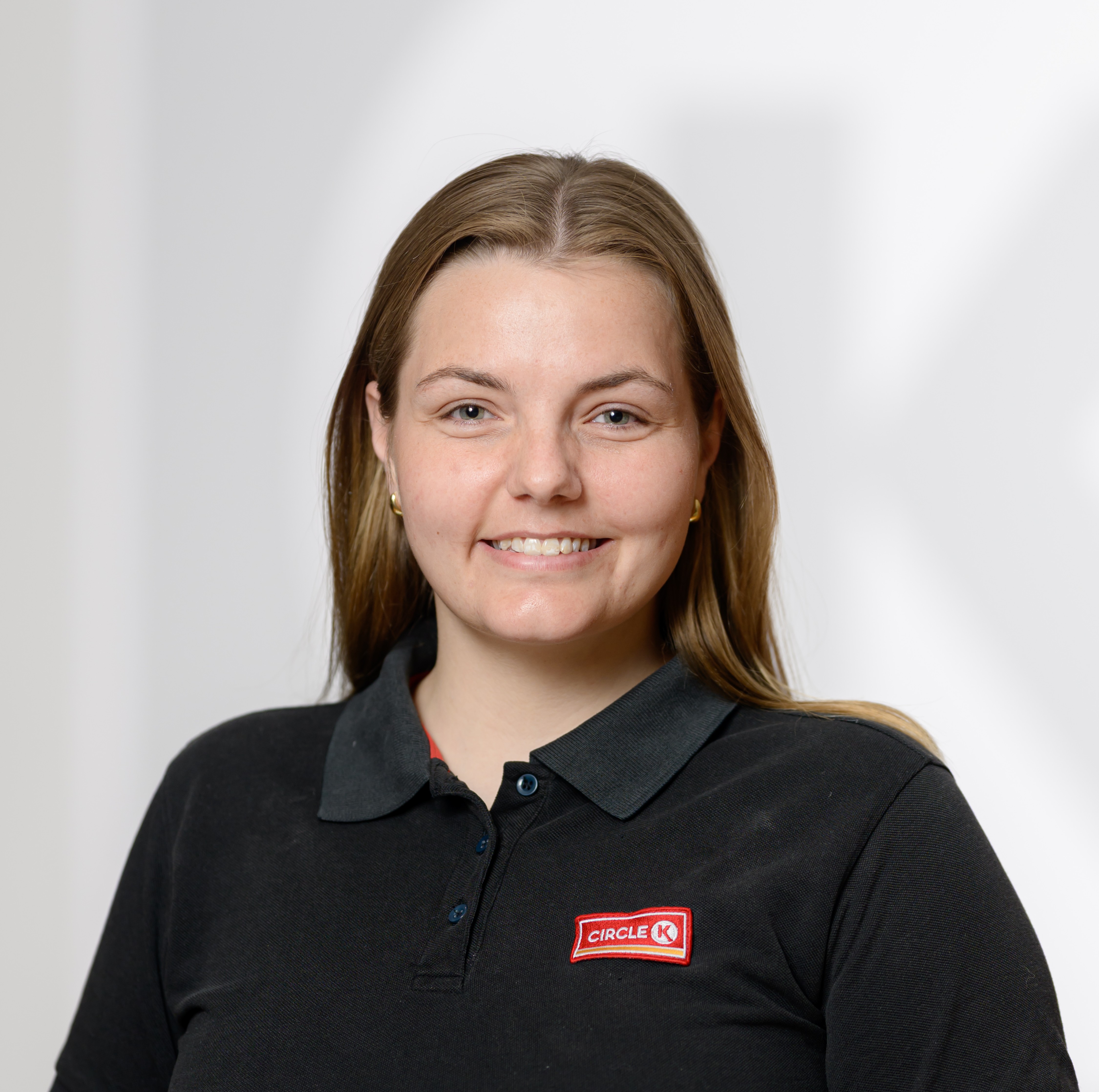 Tuva Mustorp (24) er fra Mysen, bor i Askim, og har jobbet på Circle Ks stasjoner på Storebaug i Moss, Ørje i Marker samt Sekkelsten. Nå er hun daglig leder på Circle K Mosseporten.