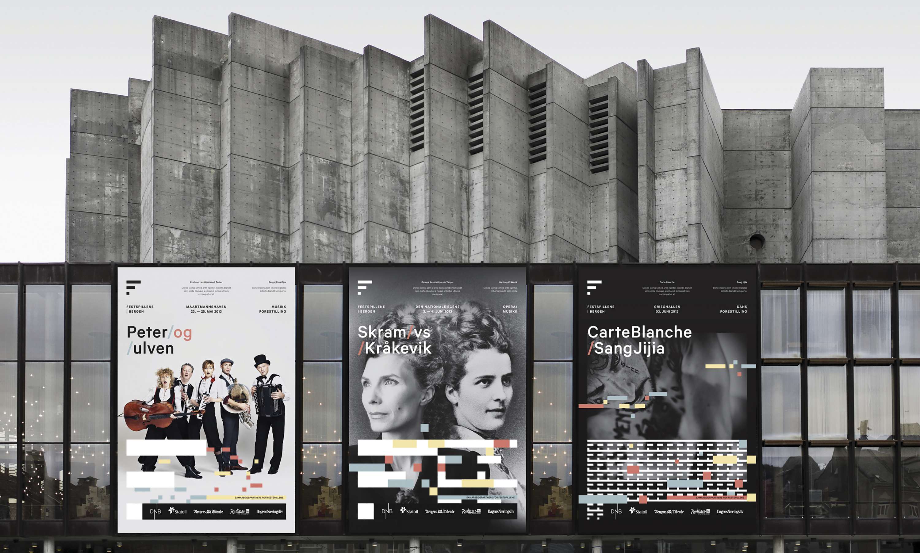 Festspillene i Bergen og ANTI er nominert til Hedersprisen for god design for festspillenes nye visuelle identitet. Foto: ANTI