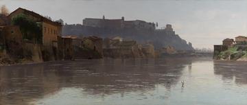 ”Monte Aventino”: Christian Skredsvigs ”Monte Aventino” (1883) henger i en av gjestesuitene på Slottet til vanlig. Nå er maleriet på eksklusiv visitt i Tromsø. Foto: Jan Haug/Det kongelige hoffs fotoarkiv