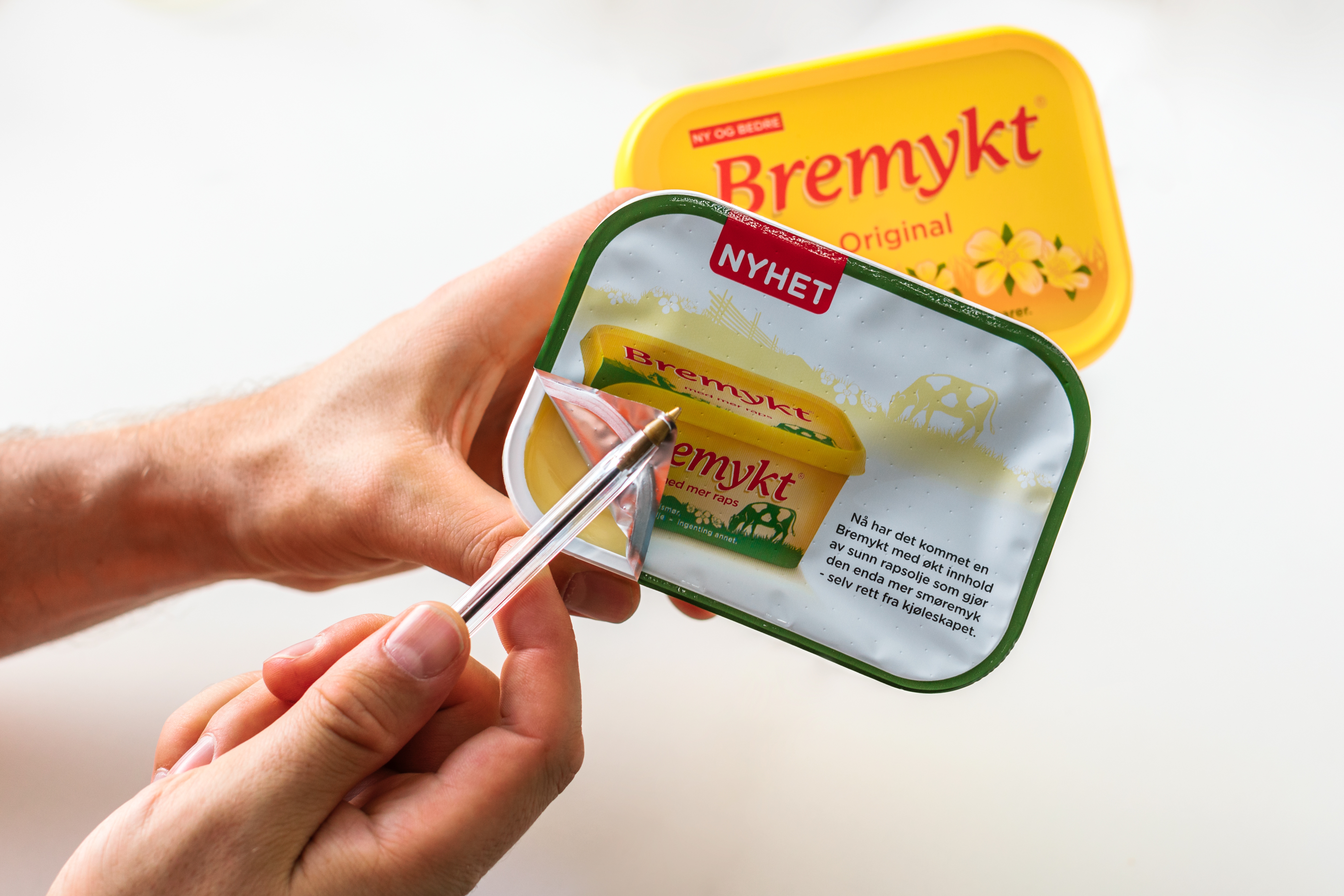 – Vi ville utvikle et beger som hadde samme gjenkjennelige og særegne form – uavhengig av om det var snakk om Tine Smør eller Bremyk og Brelett fra Fjordland – og uansett om produktet kom i lite, mellomstort eller stort beger. Designerne laget en rekke prototyper som vi testet på forskjellige brukere, blant annet revmatikere, sier Aas.