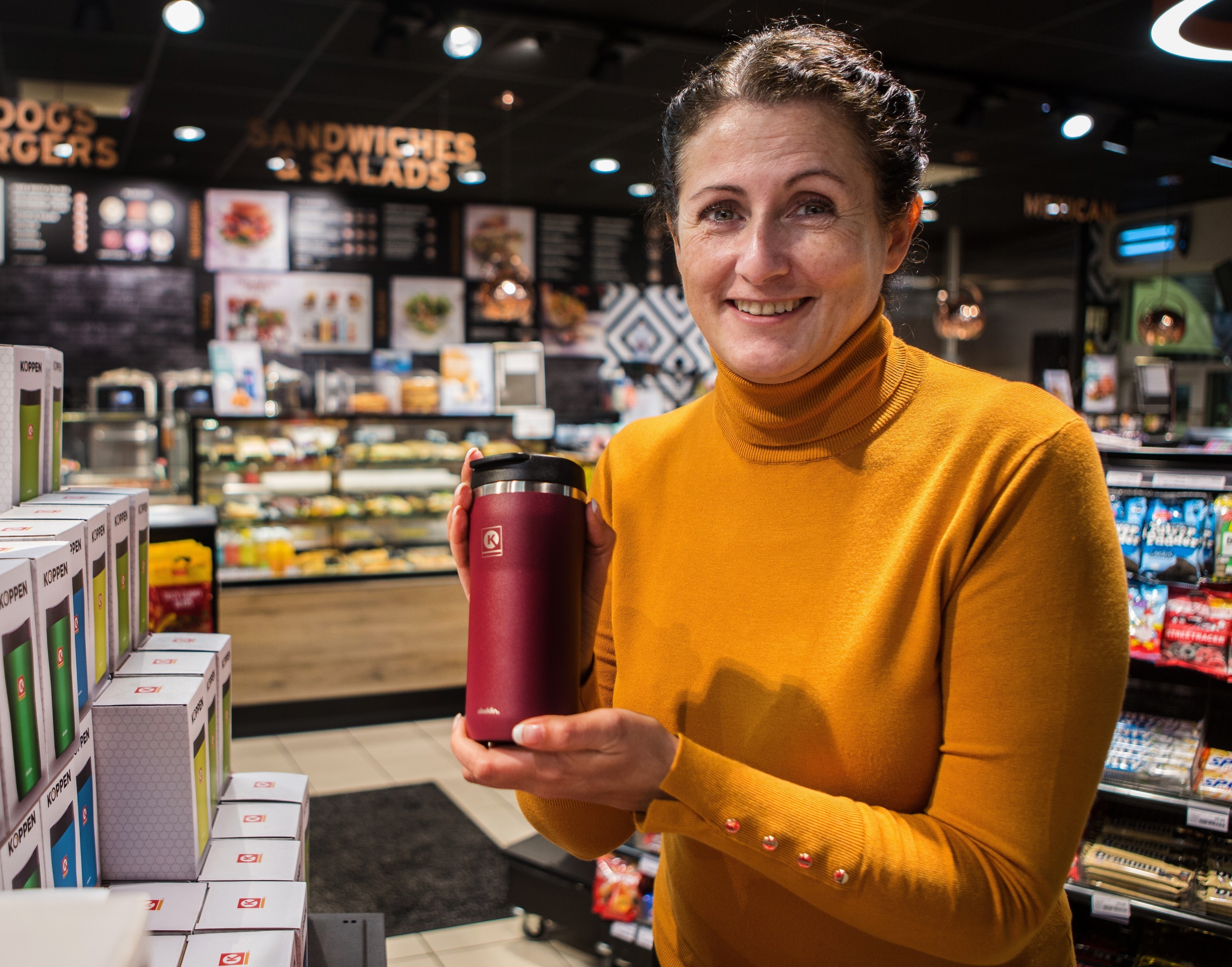 POPULÆR KOPP. Jeanette Amara i Circle K Norge forteller at Koppen har blitt brukt om lag 31,2 millioner ganger i Buskerud de siste 20 årene. Foto: Johnny Syversen