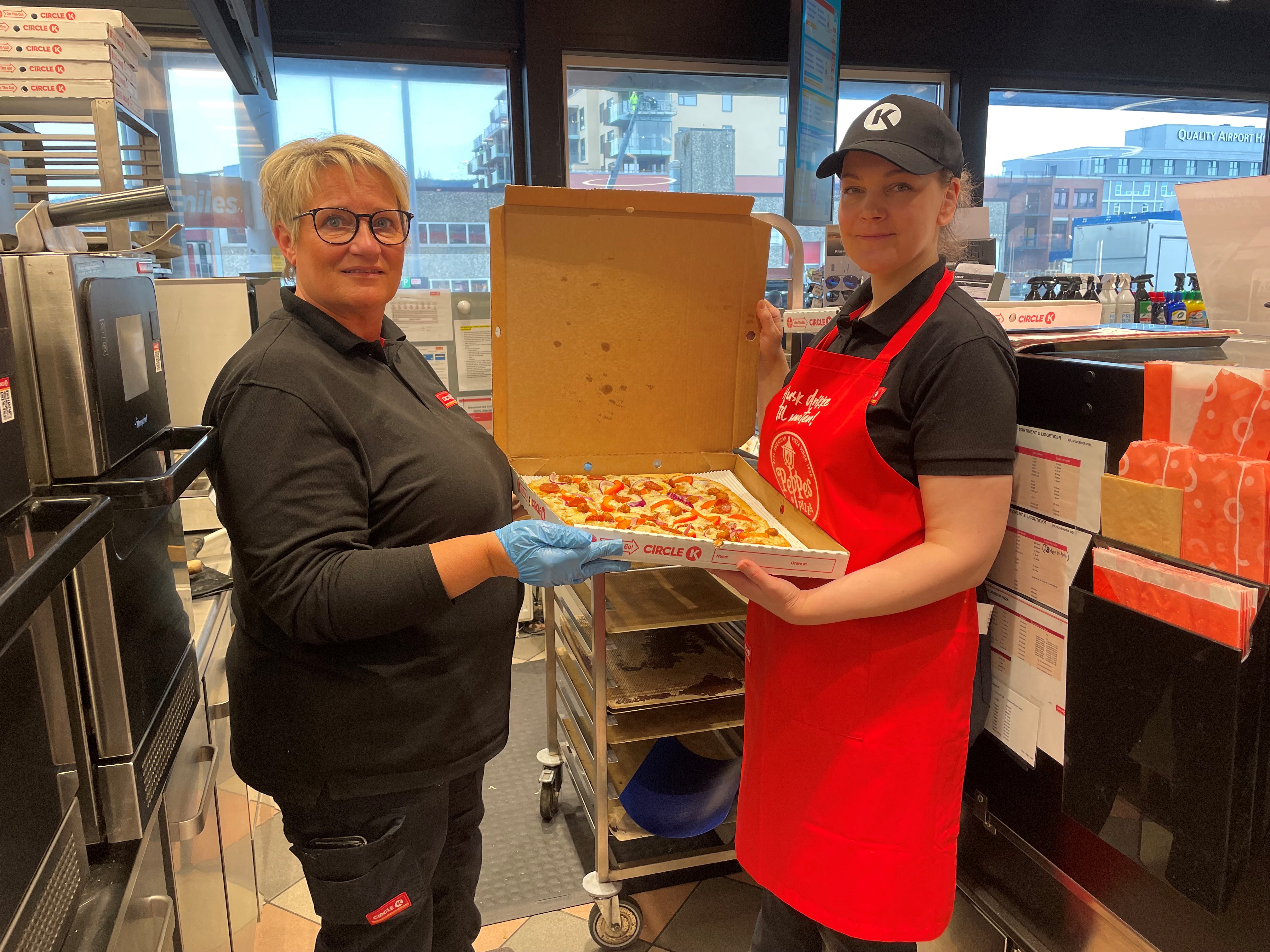 STORSELGERE. Medarbeiderne på Circle K Stjørdal selger mest pizza blant stasjonene nord i fylket. Foto: Circle K Stjørdal