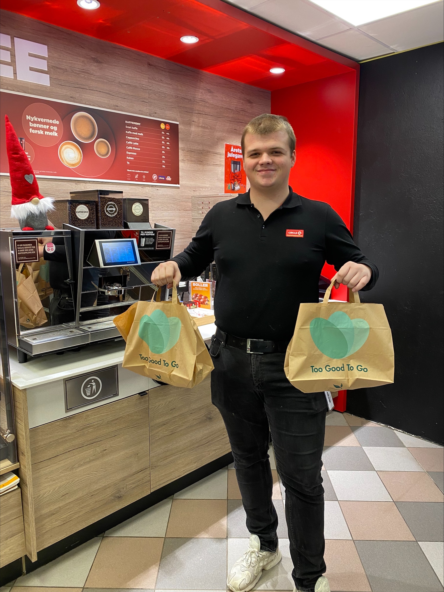 MATREDDER. Aron Kristoffer Lothe Skjerdal er med på å redde tusenvis av måltider ved Circle K Sogndal. Foto: Circle K Sogndal
