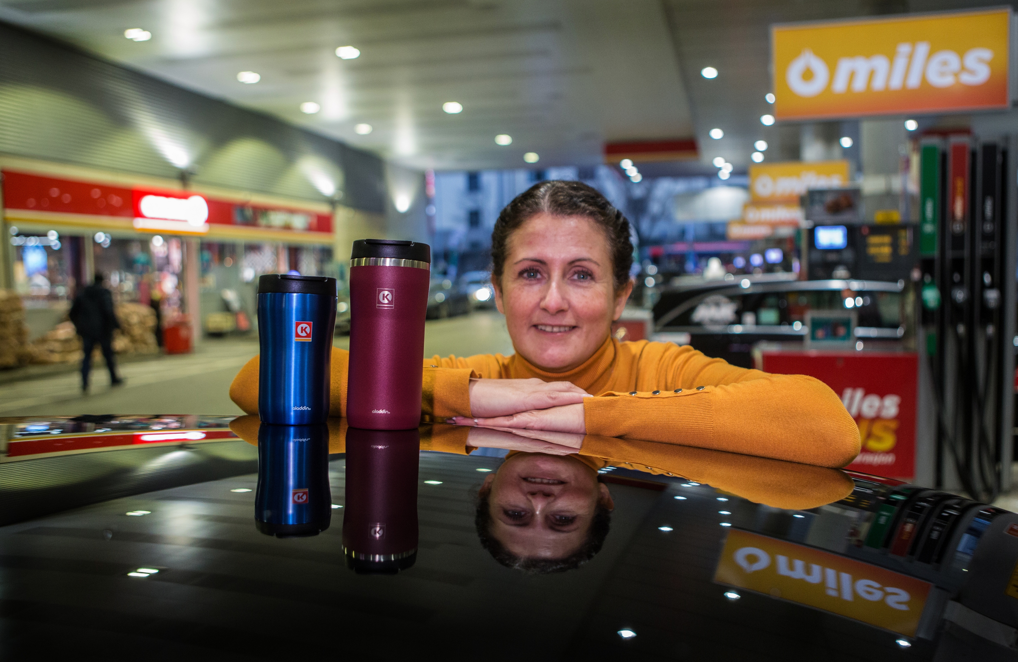 STASJONSKAFFE. Vi drikker stadig mer kaffe på veien. Jeanette Amara i Circle K Norge viser fram Koppen 2020 – en av kafeavtalekoppene på det norske markedet. Foto: Johnny Syversen/josy.no