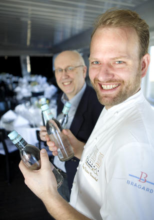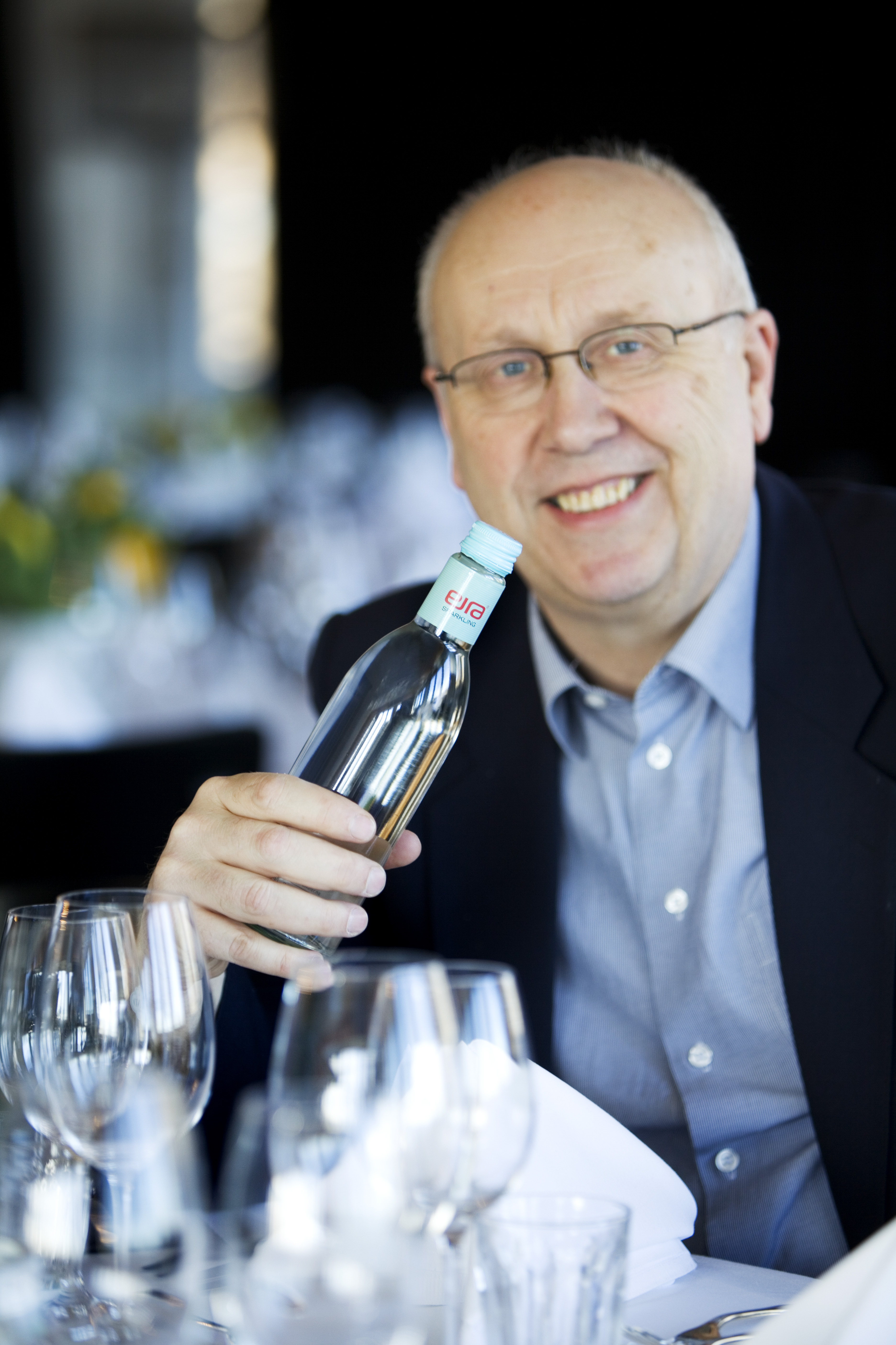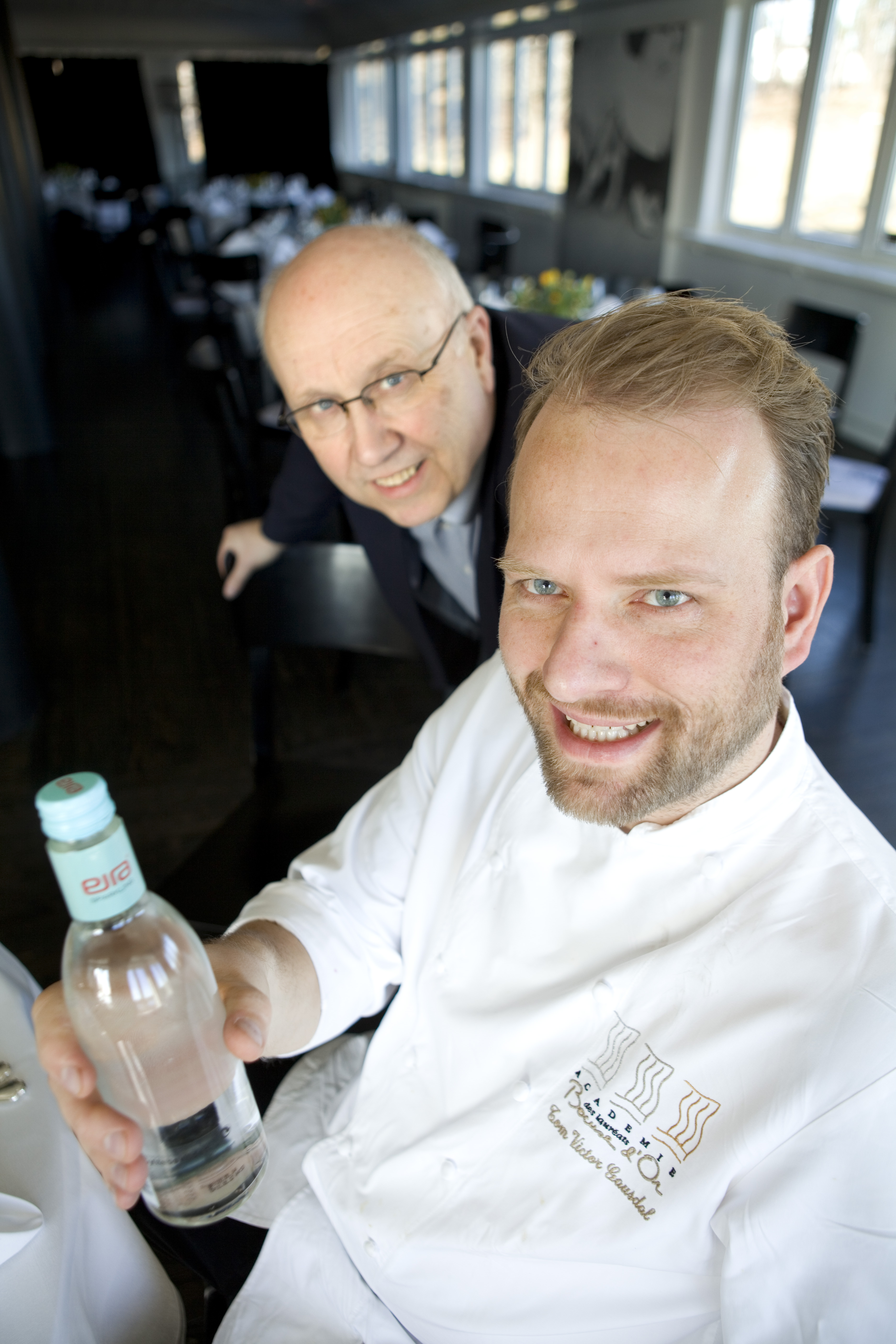 – Vann er grobunn for alt, og det skal være det reneste som finnes. Og dette vannet, det smaker ingenting! Det er perfekt, sier superkokken med entusiasme i stemmen. Han snakker om den iøynefallende flasken han holder i hånden, som det står ”EIRA” på.