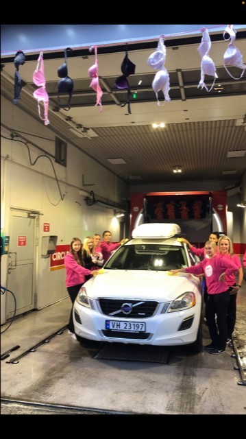BH-ER PÅ FAUSKE. Bilvasken på Circle K Fauske var pyntet med BH-er i hele oktober. Foto: Circle K Fauske