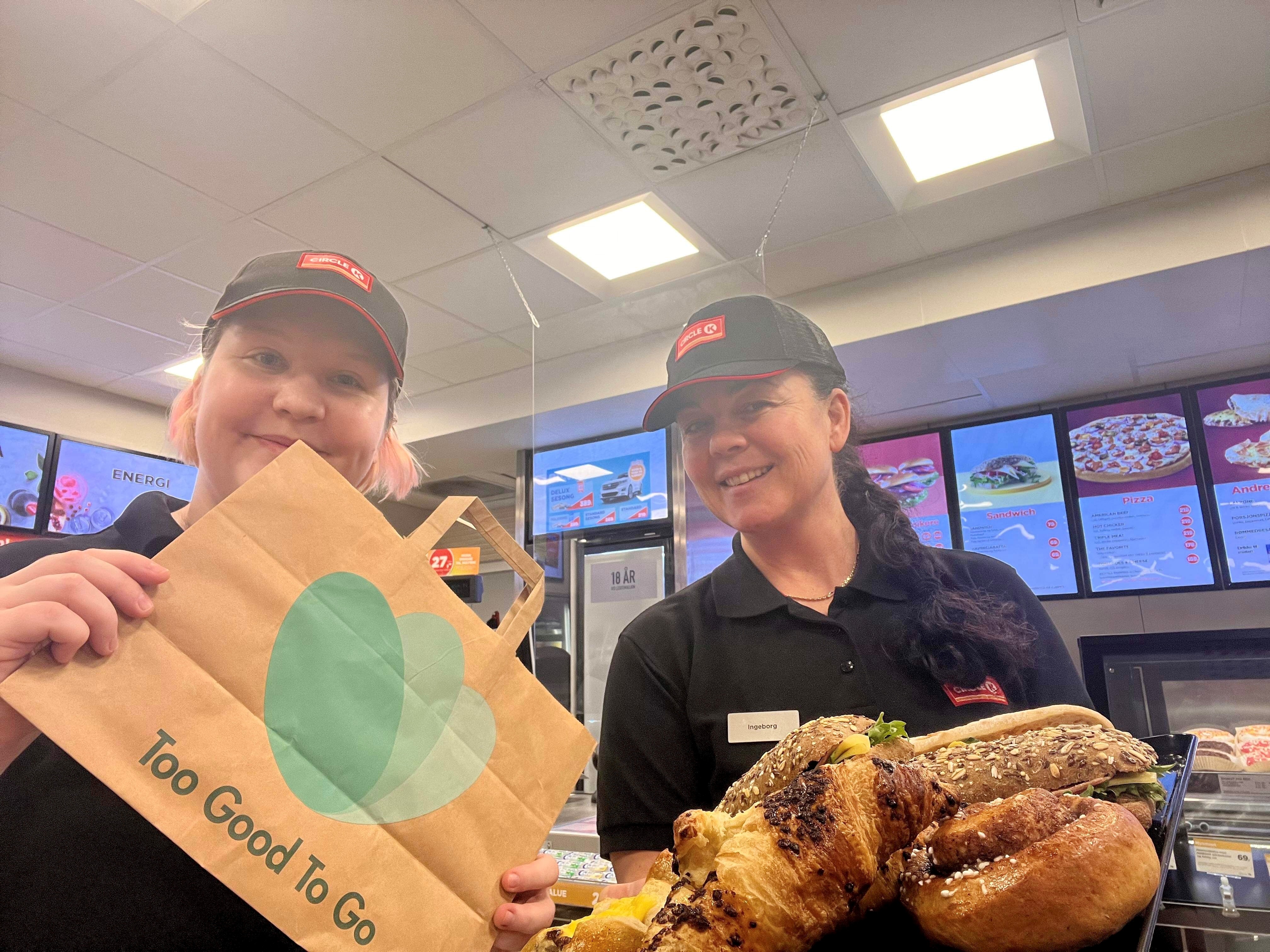 MATREDDERE. Rebekka Lie (t.v.) og Ingeborg Juras er med på å redde tusenvis av måltider ved Circle K Leirvik. Foto: Circle K Leirvik