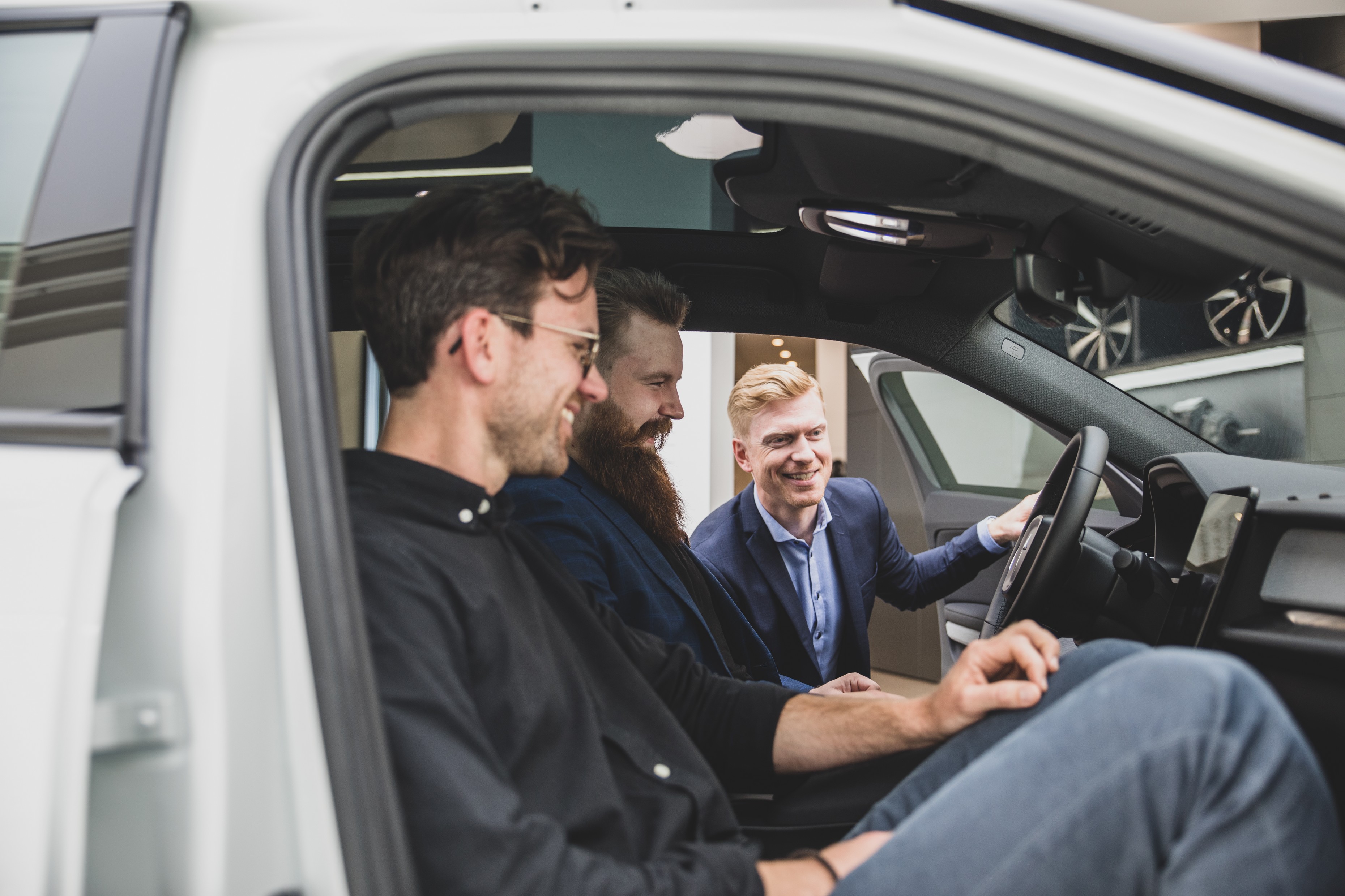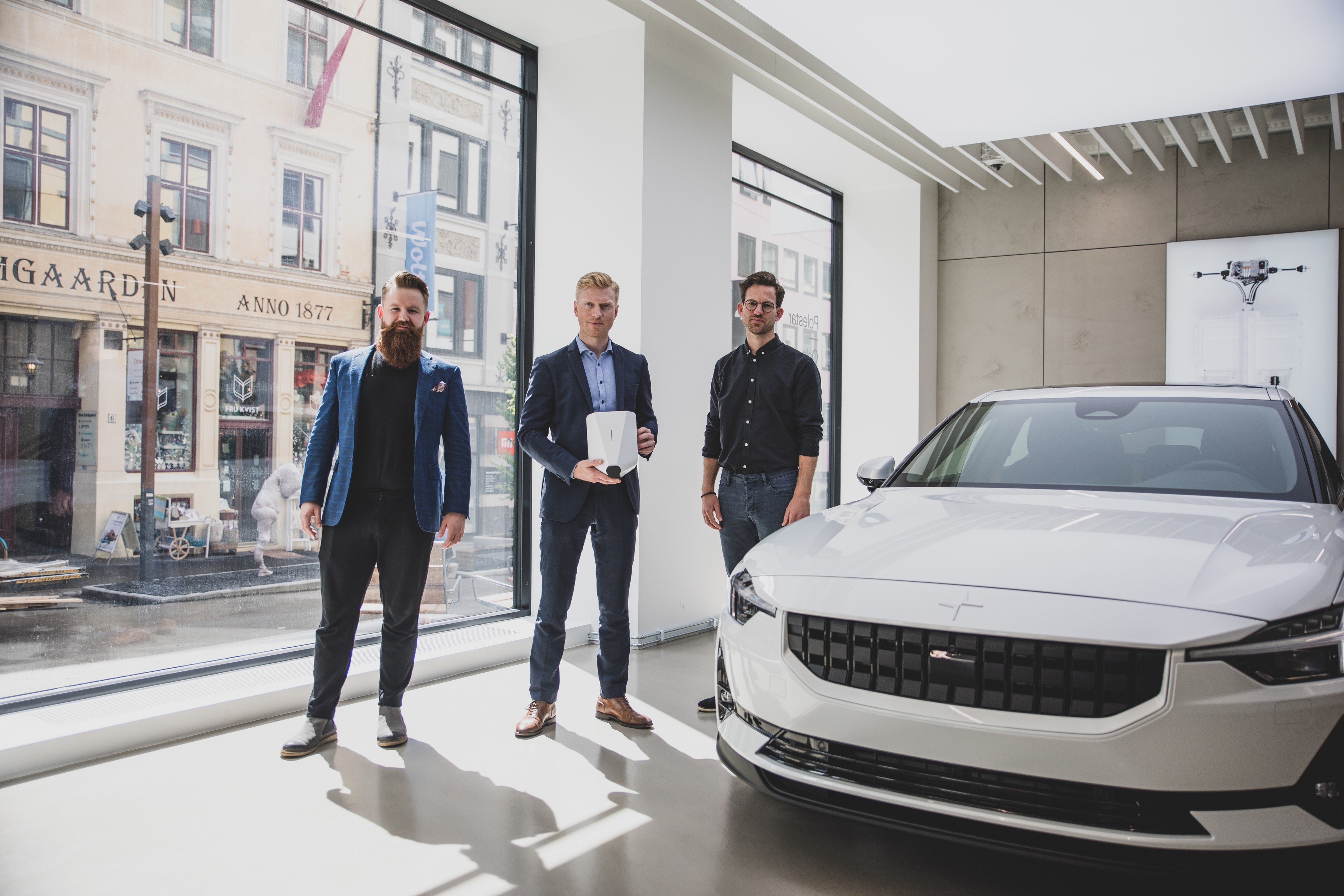 LADER OPP. Like i forkant av Polestar 2-slippet i Norge, offentliggjør Polestar en landsdekkende ladeavtale med Circle K Norge og Easee. På bildet, fra venstre: Caspar Mariero-Klees fra Easee, Alexander Hørthe i Polestar og Marius Blaker Høgevold i Circle K Norge. Foto: Anders Nordermoen / Got Vision