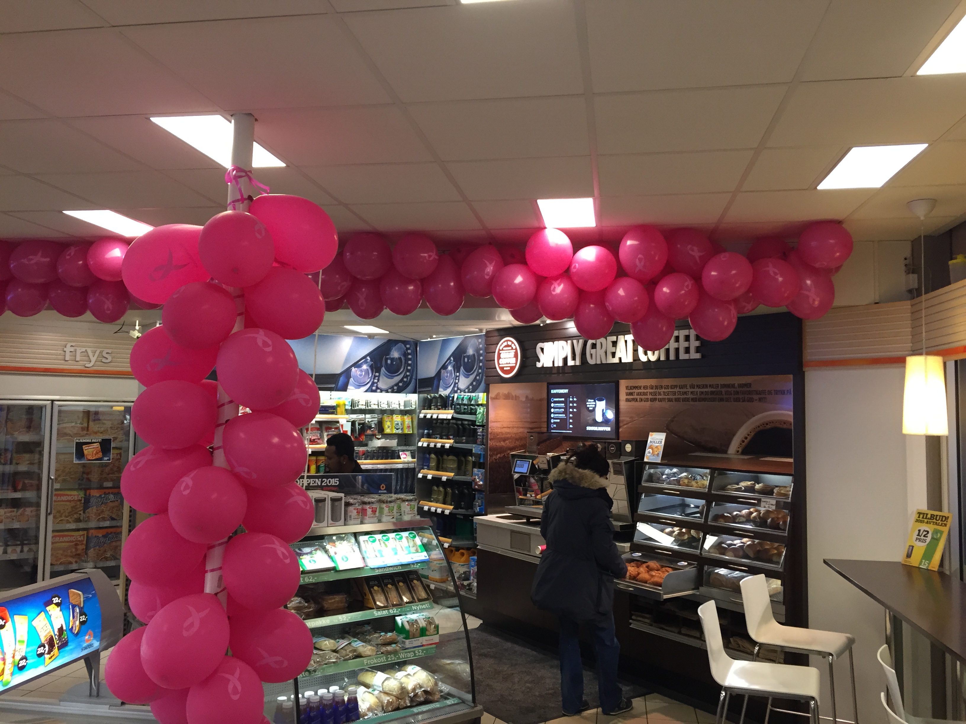 For å skape blest om aksjonen installerte Statoil Økern rosa lys på uteområdene. Inne på stasjonen delte rosakledde medarbeidere ut rosa godteri for å minne kundene på aksjonen.