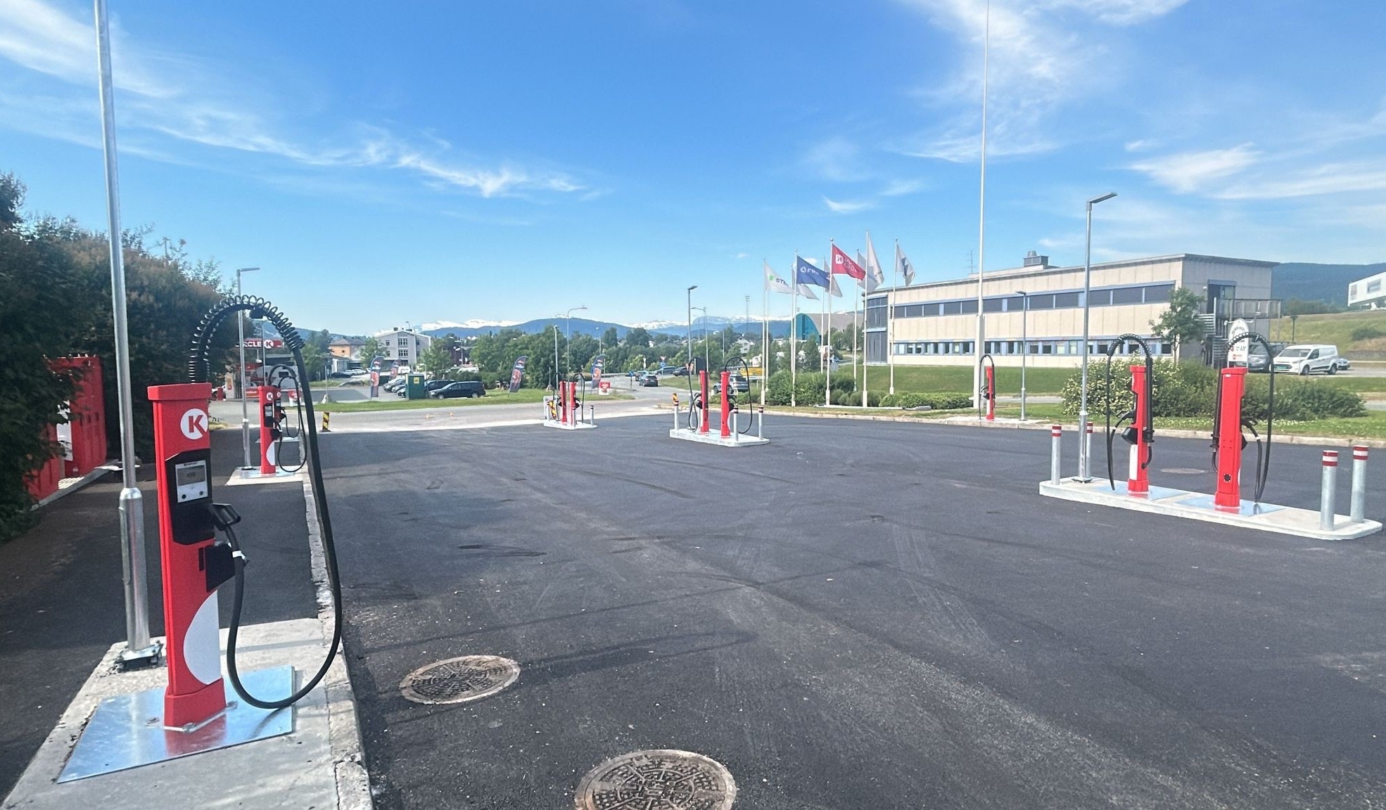 - Circle K Mosjøen: 6 stk. 400 kW-ladeplasser To av ladeplassene blir under pumpetaket. Mellomløsning med ladecontainer.