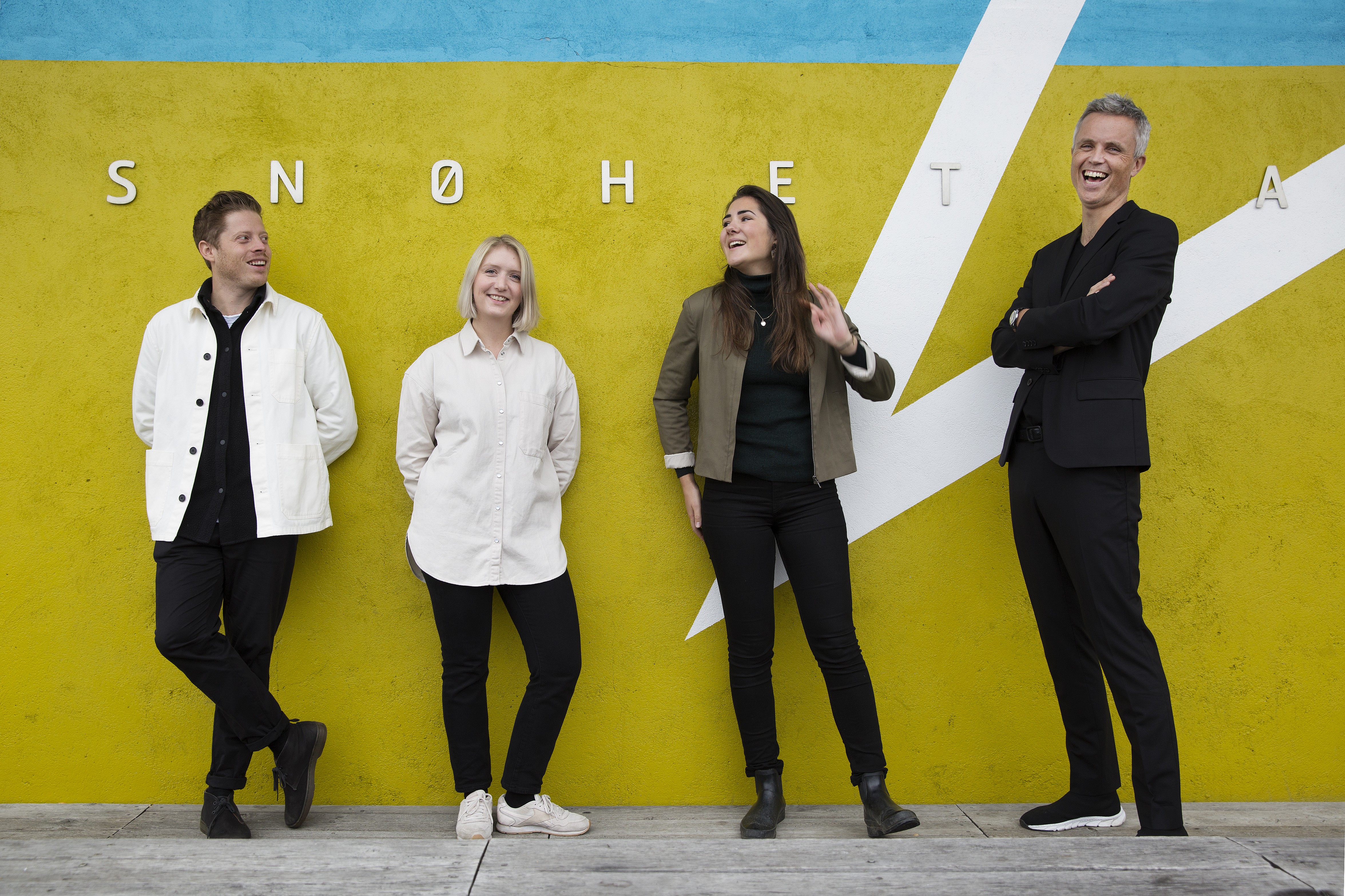 STØTTE TIL INNOVATØRER. Dypp er blant prosjektene som får DIP-støtte i år. Fra venstre Snøhettas Stian Alessandro Ekkernes Rossi, Frida van der Drift Breivik og Frøya Thue fra Dypp og Tor Inge Hjemdal i DOGA. Foto: Sverre Christian Jarild