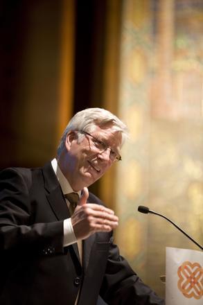 TROR PÅ ELDREBØLGEN: – Det er en stor ressurs for fellesskapet at vi får flere seniorer, sa finansminister Sigbjørn Johnsen fra talerstolen på Pensjonistforbundets 60-årsfeiring. Foto: Johnny Syversen