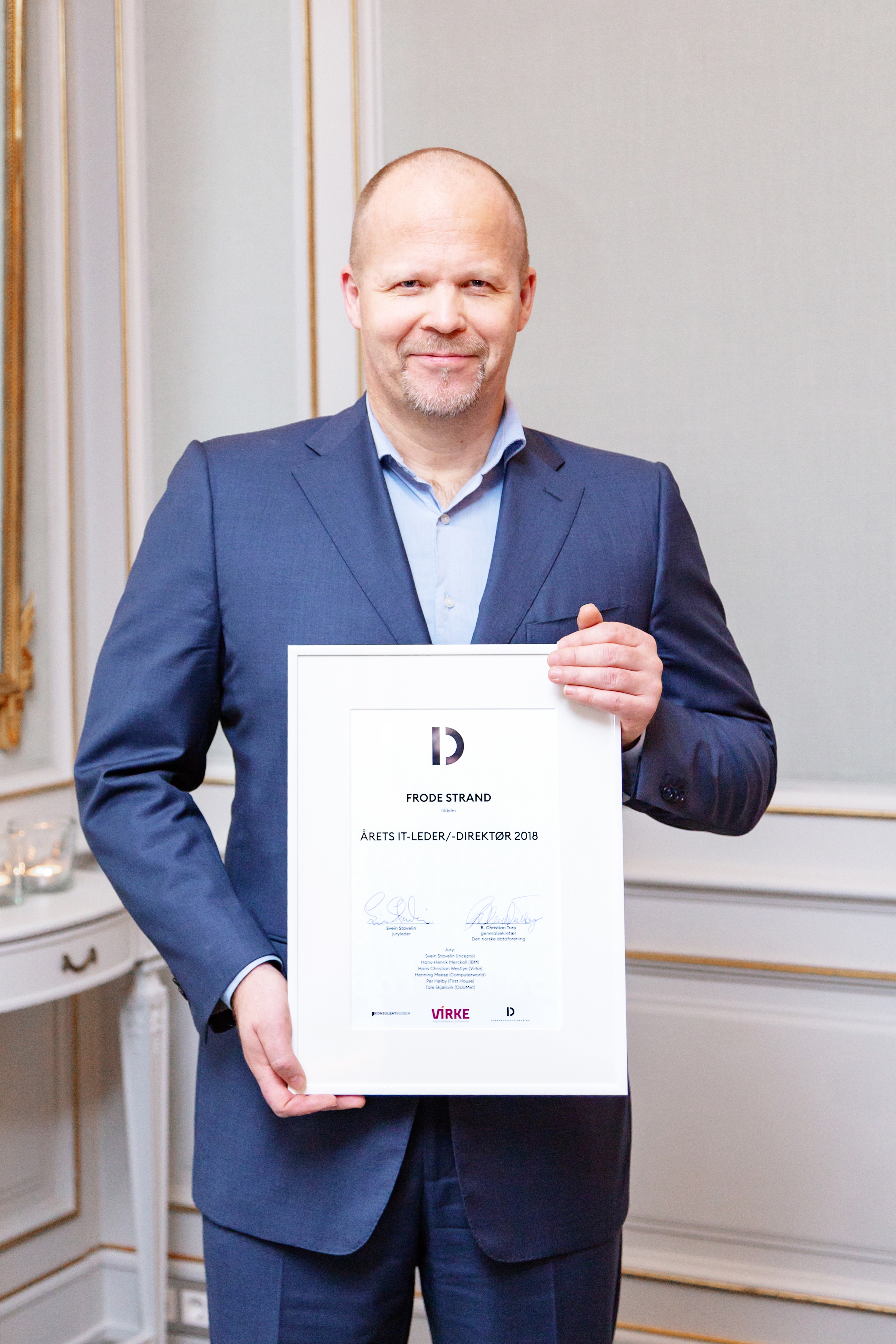 LANDETS FREMSTE IT-LEDER. Frode Strand i Kværner ASA ble hedret med prisen Årets IT-direktør under DND Rosing- og Konsulentprisen 2018 på onsdag. Foto: Sopra Steria
