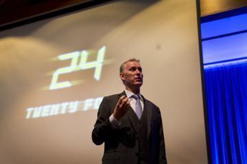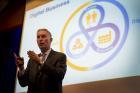 – Vi har 24 måneder på å tilpasse oss digitaliseringens nye virkelighet. De som ikke klarer det risikerer å dele skjebne med 1900-tallets isblokkprodusenter, sa Peter Sondergaard på lederkonferansen Power of Sharing i regi av konsulentselskapet Sopra Steria. Foto: Hanne Kristine Fjellheim