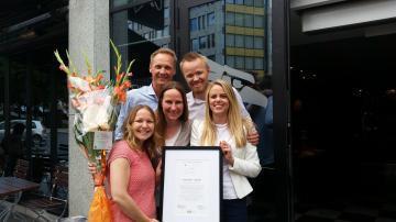 BEST PÅ DIGITALISERING. Husbanken og Sopra Steria viser fram prisbevis på at Startlån er årets digitale tjeneste. Bak fra venstre: IT-direktør Anders Jørgensen og prosjektleder Trond Venger. Foran: interaksjonsdesigner Susanne Kvernmo Holgernes, produkteier Randi Mathiesen og interaksjonsdesigner Cecilie Schrøder Fjellhøy.