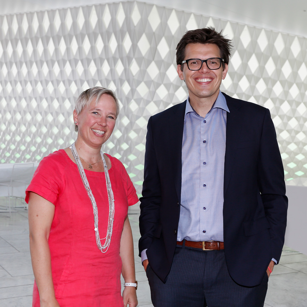 TØR Å TA FEIL. Professor Nathan Furr og innovasjonsekspert Marianne Selle i Sopra Steria er enige i at det er lettere å prøve og feile i Norge på grunn av en åpen og lærevillig kultur i arbeidslivet. Foto: Kristin Jacobsen / Studio Oscar