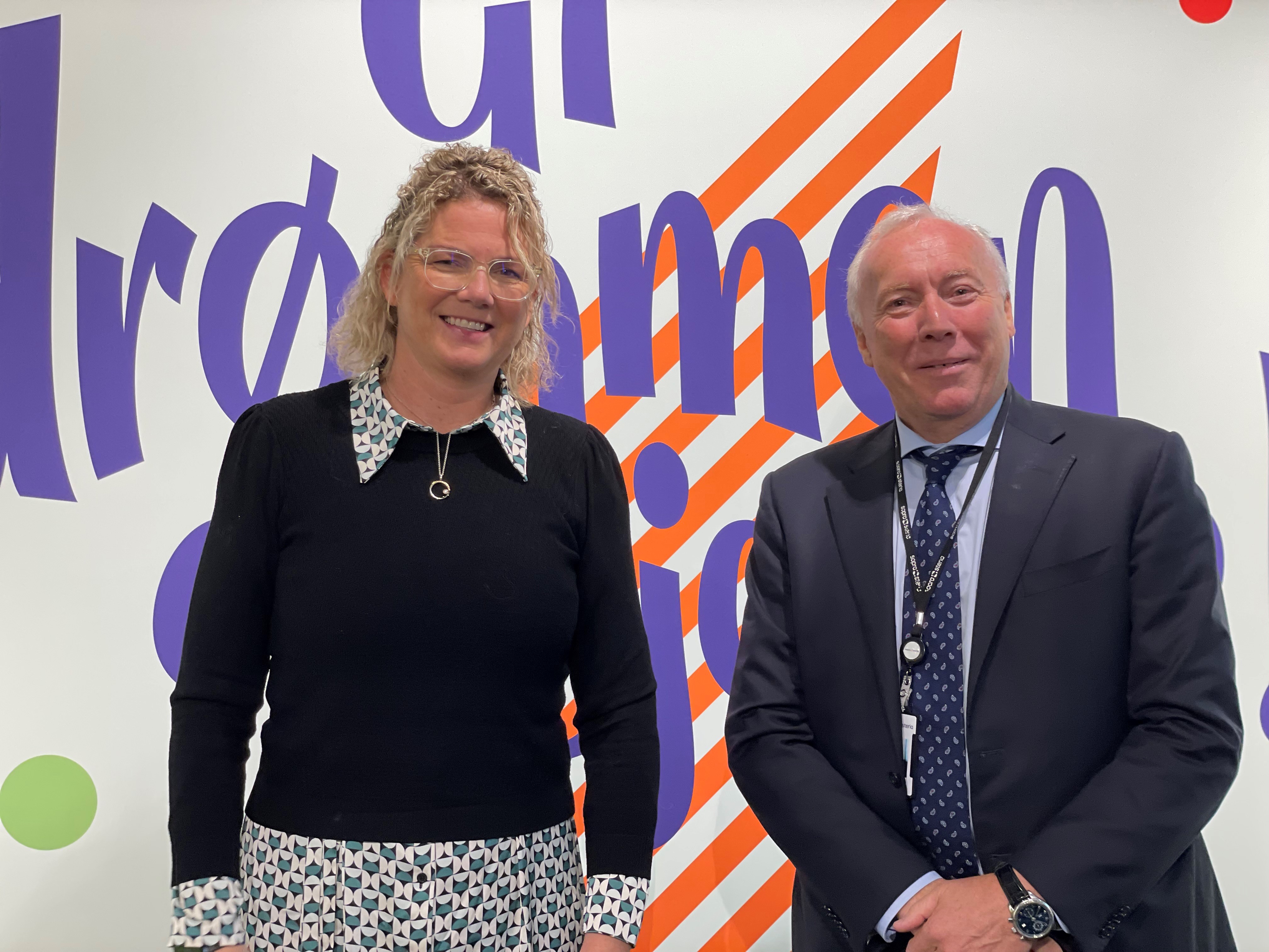 Tonje Sagstuen, konstituert direktør i Norsk Tipping og Kjell Rusti, administrerende direktør i Sopra Steria, ser fram til å samarbeide fremover. Foto: Sopra Steria