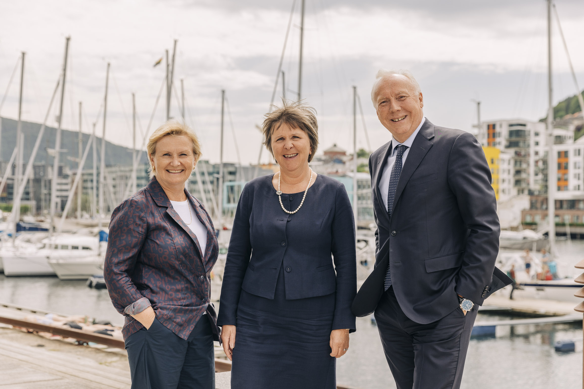 Sopra Steria kjøper Marin IT ogblir internasjonal IT-partner til DOF Group og Austevoll Seafood. (f.v.) Britt Kathrine Drivenes, CFO Austevoll Seafood, Hilde Drønen, styreleder i Marin IT og finansdirektør i DOF Group og Kjell Rusti, administrerende direktør, Sopra Steria. Foto: Pernille Sommer