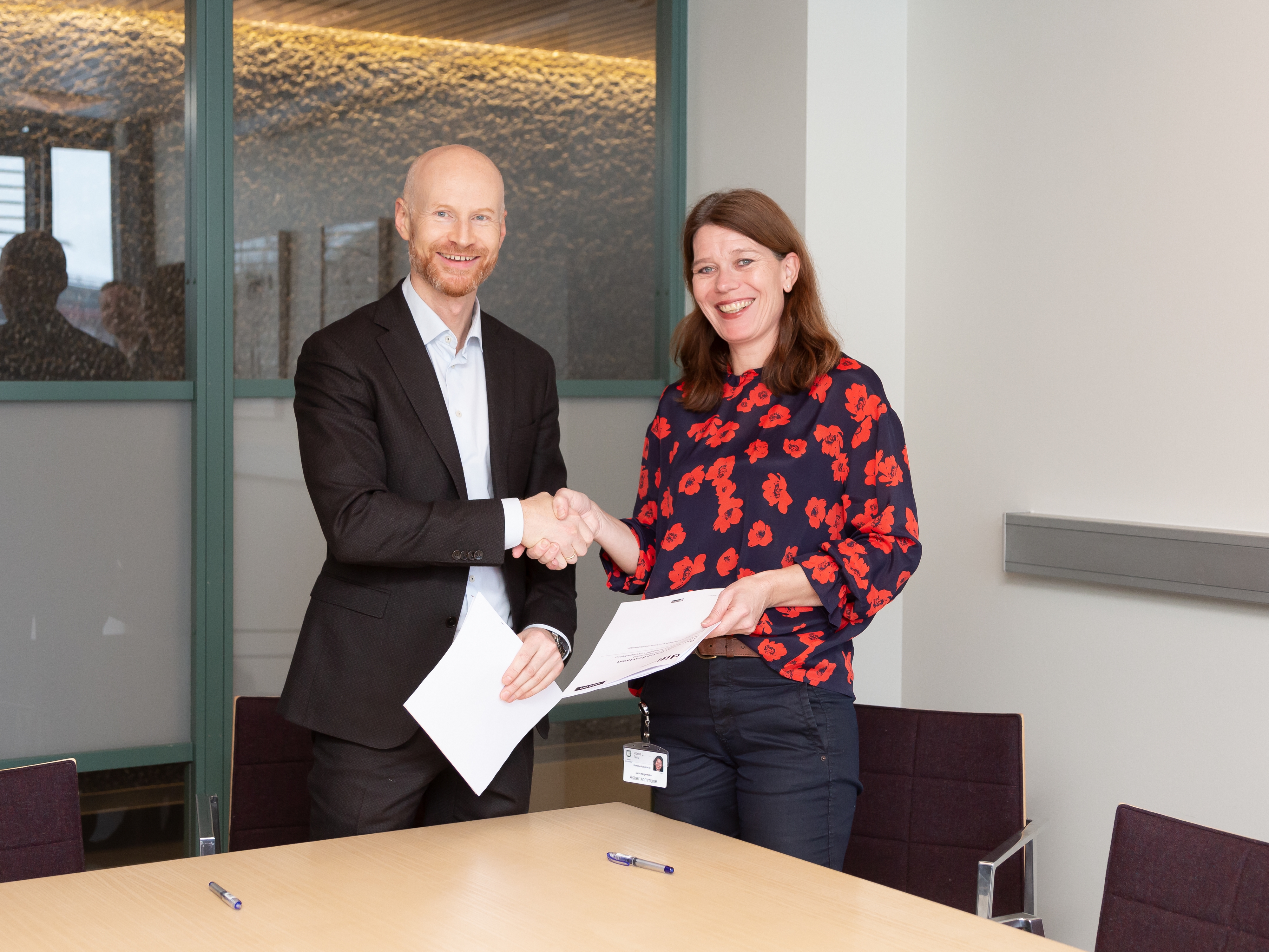 SOSIAL HJELPER. Sopra Steria, her ved Lars Ødegaard, skal hjelpe Digitale Asker og Vibeke Lindeberg Strand, med å bli enda bedre på Workplace by Facebook. Foto: Kristin Jacobsen / Studio Oscar