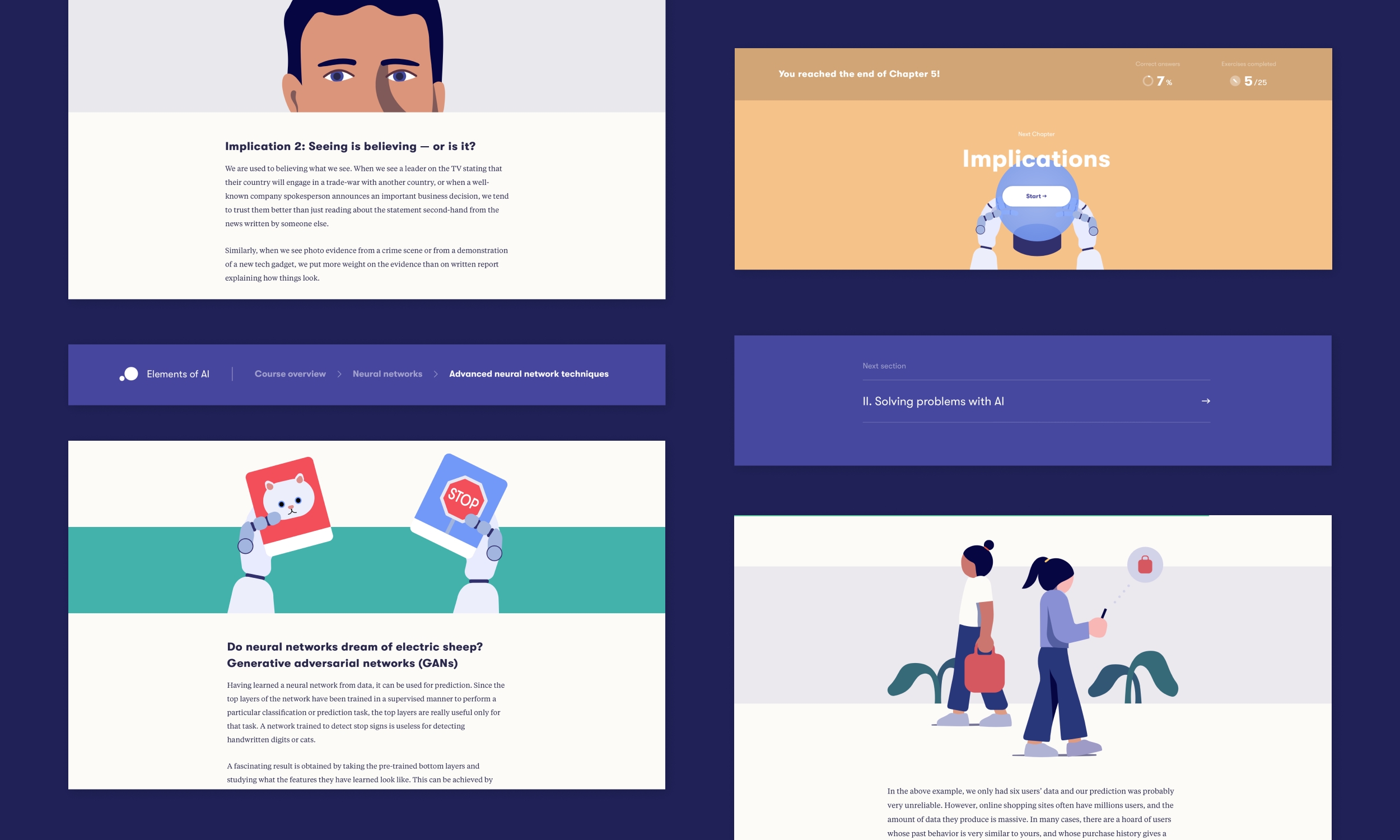 Elements of AI er et gratiskurs som er utviklet av det finske design- og teknologiselskapet Reaktor, det norske designbyrået Feed og Universitetet i Helsinki. Da kurset ble lansert i Finland våren 2019 var målet at 1 prosent av alle finner skulle ta det. Innen utgangen av året hadde Elements of AI nær 200 000 registrerte brukere fra 110 land. Målet er derfor blitt oppgradert til at 1 prosent av verdens befolkning skal ta kurset innen 2020.